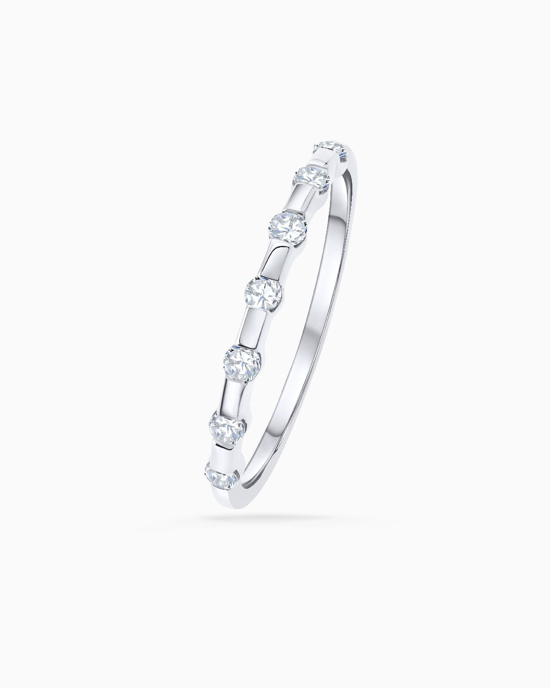 Sortija Media Alianza Milanne de Diamantes en Oro Blanco de 18 Kt