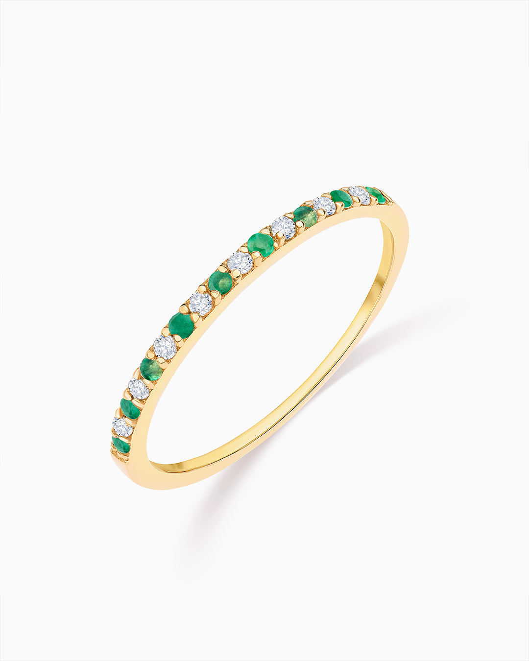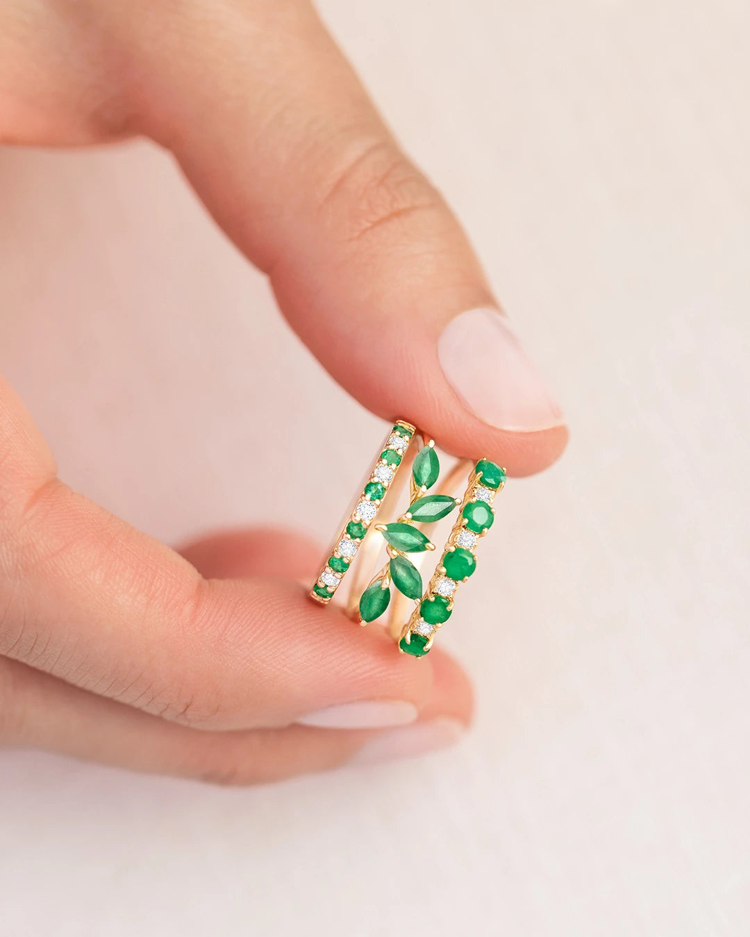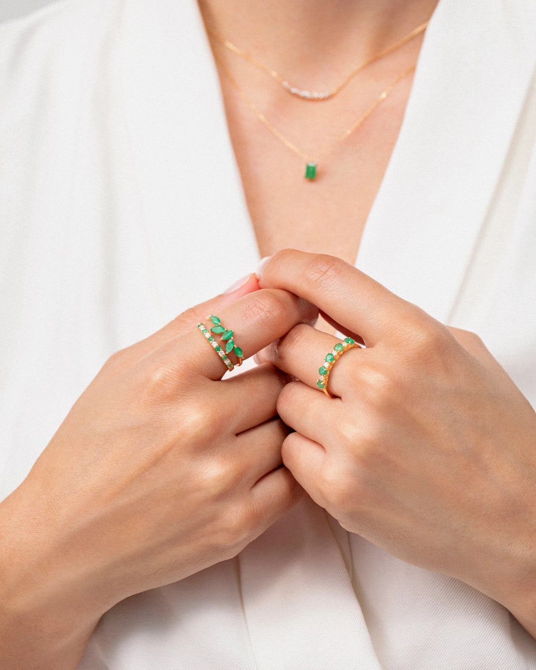 Sortija Media Alianza Milett Diamantes y Esmeraldas en Oro Amarillo de 18 Kt