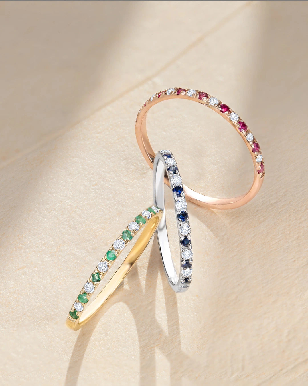 - Sortija media alianza Milett de diamantes y esmeraldas