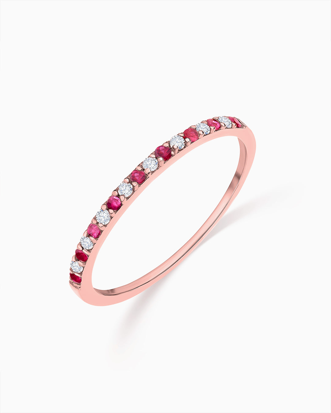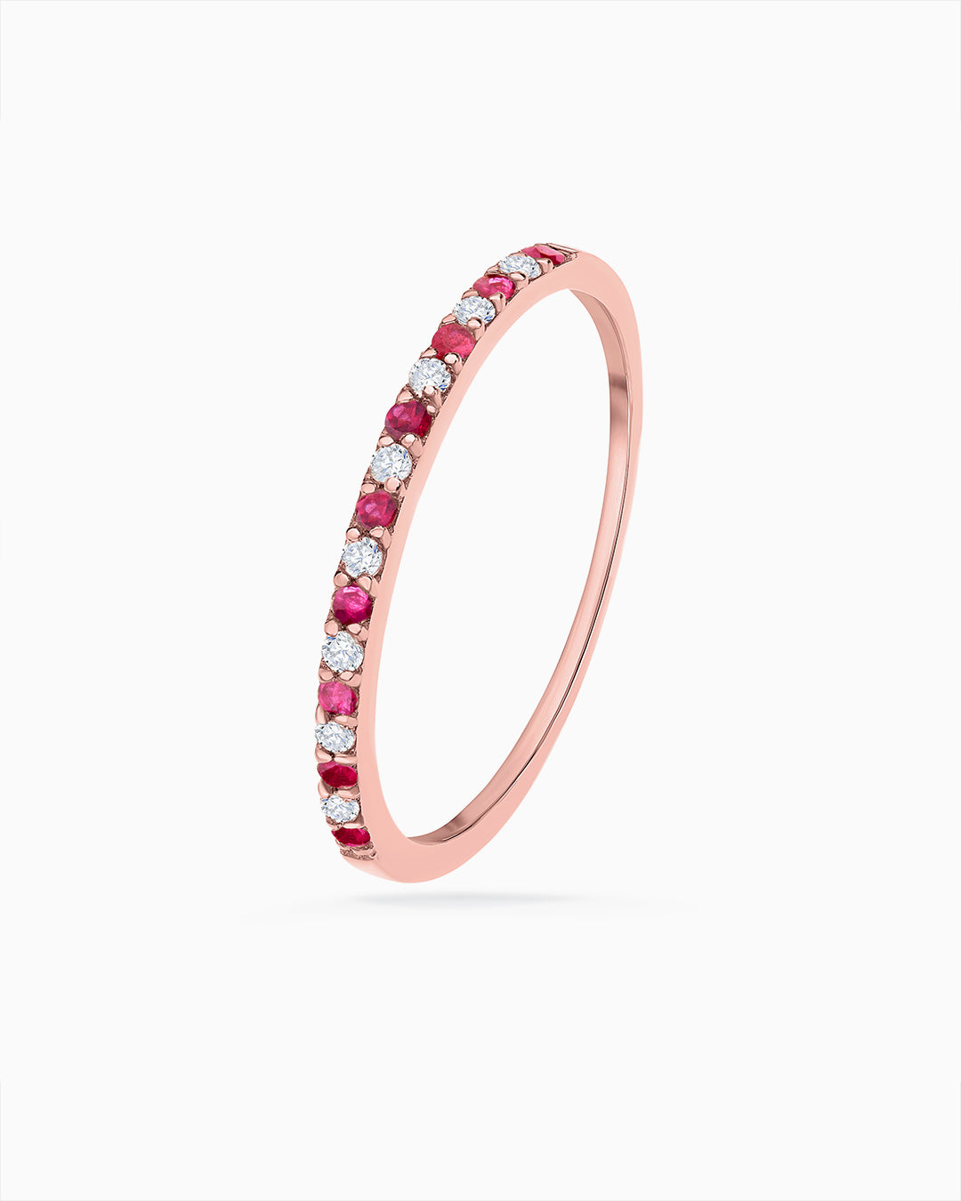 Sortija Media Alianza Milett Diamantes y Rubíes en Oro Rosa de 18 Kt