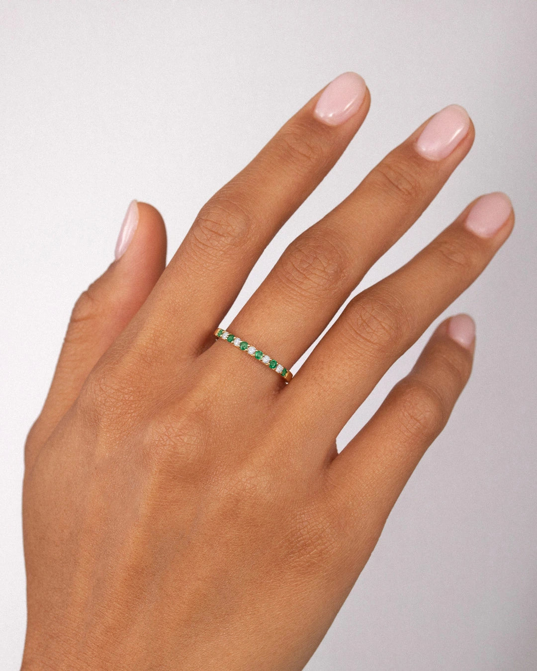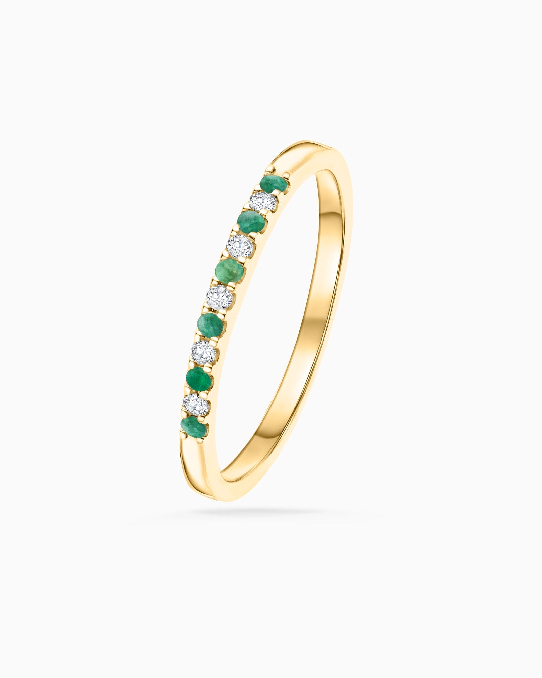 Sortija Media Alianza Vera Diamantes y Esmeraldas en Oro Amarillo de 18 Kt