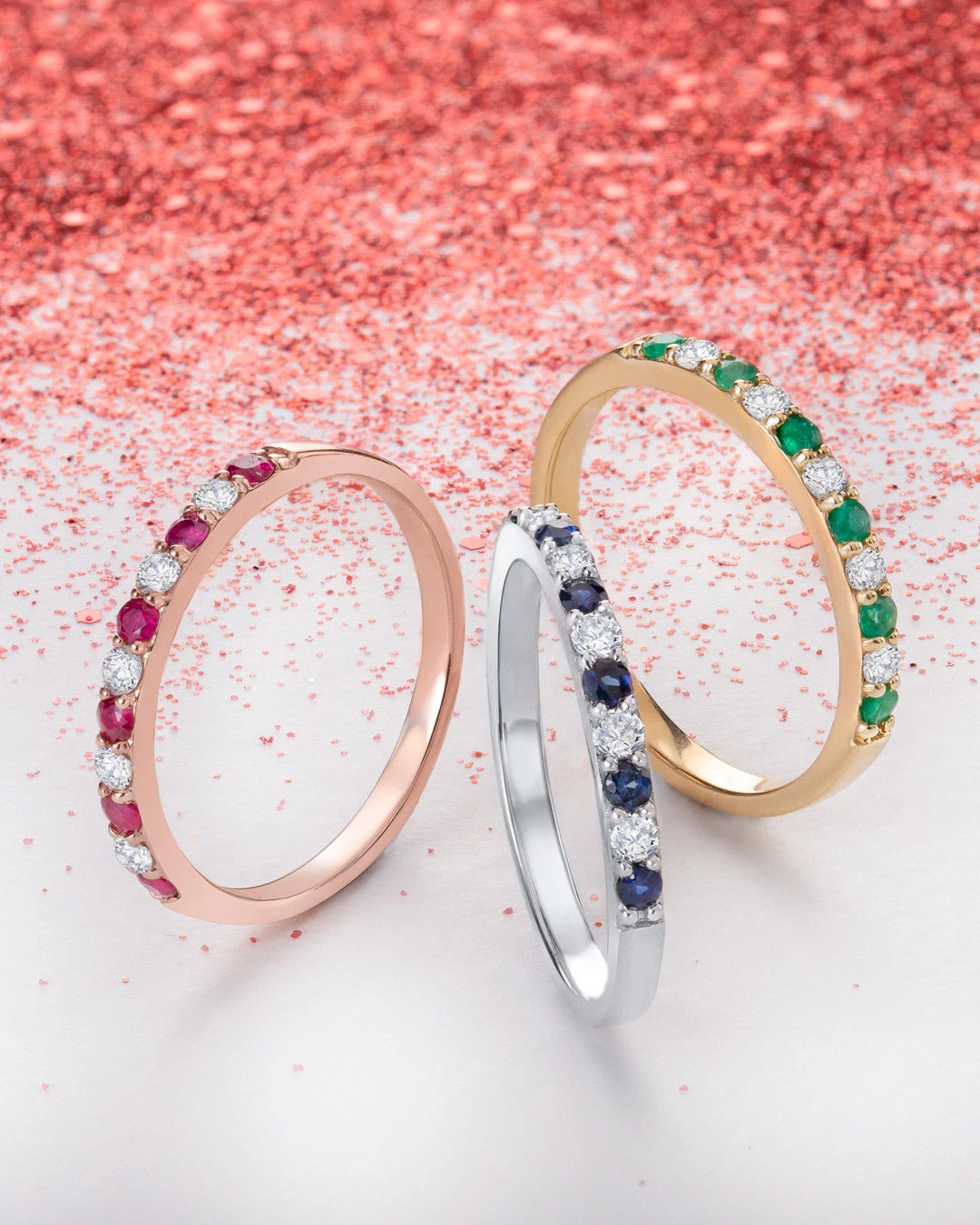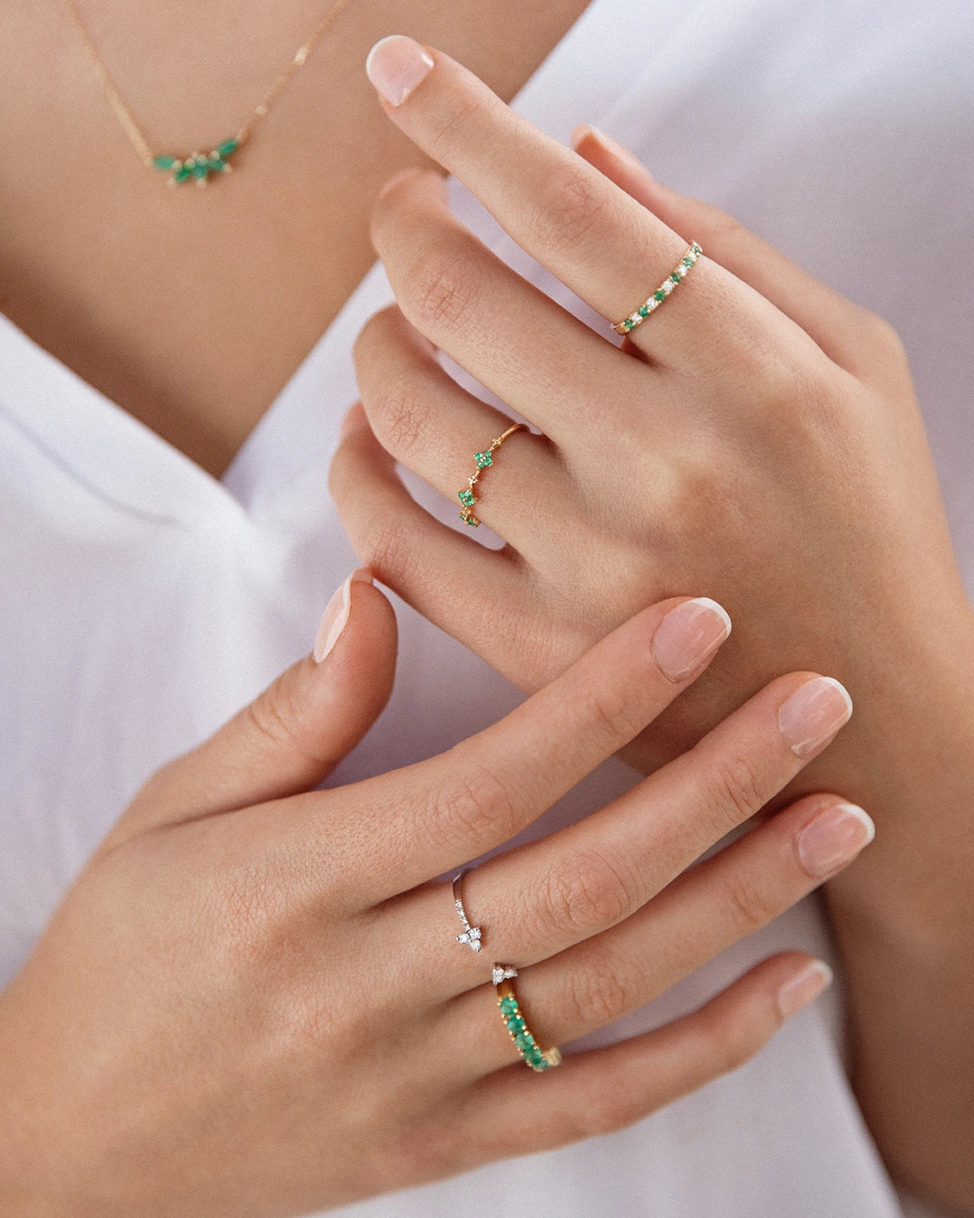 - Sortija media alianza Vera de diamantes y esmeraldas