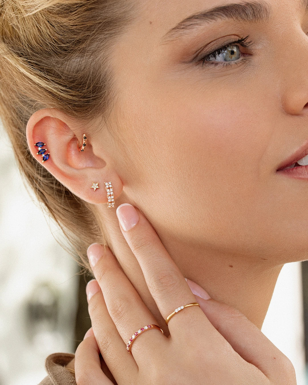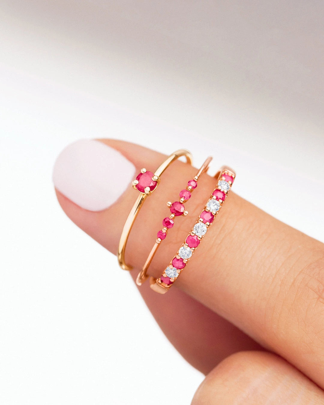 - Sortija media alianza Vera de diamantes y rubíes