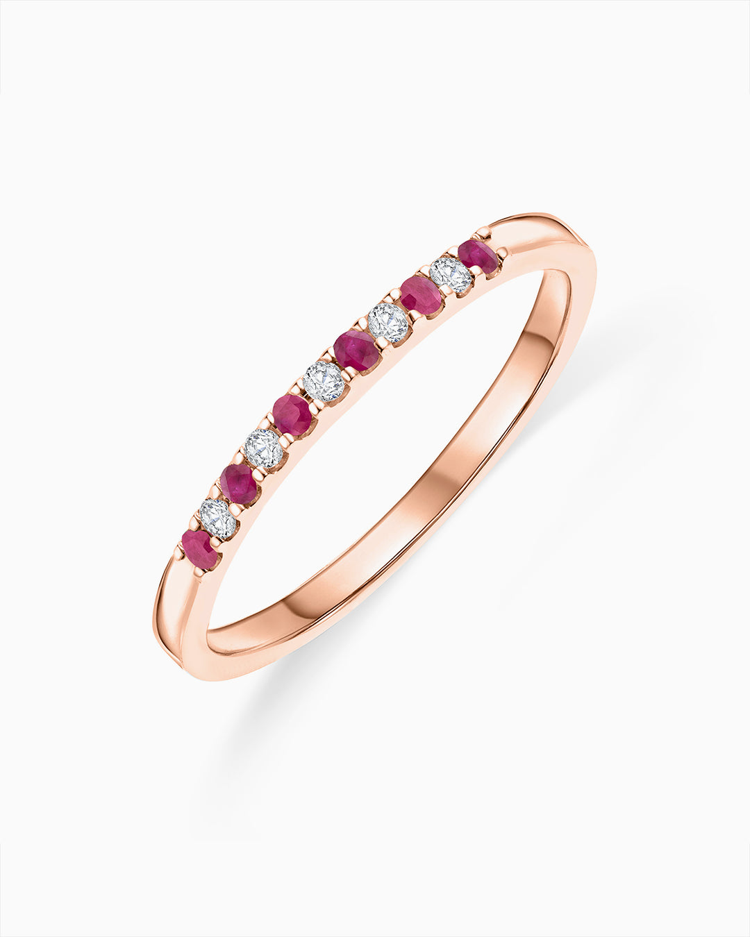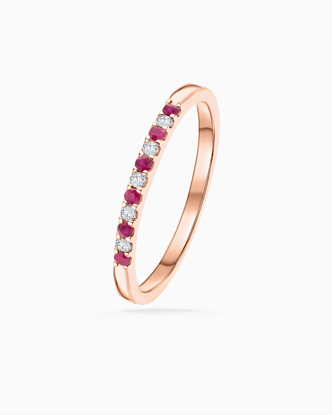 Sortija Media Alianza Vera Diamantes y Rubíes en Oro Rosa de 18 Kt