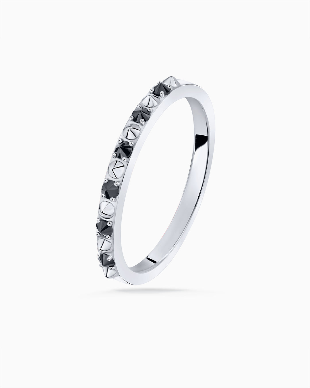 Sortija Raxel con diamante negro elaborada en oro blanco de 18 Kt. El aire 'punk' de lujo...