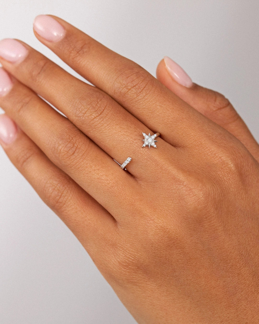 Sortija Rosa de los Vientos Open en Oro Blanco de 18 Kt