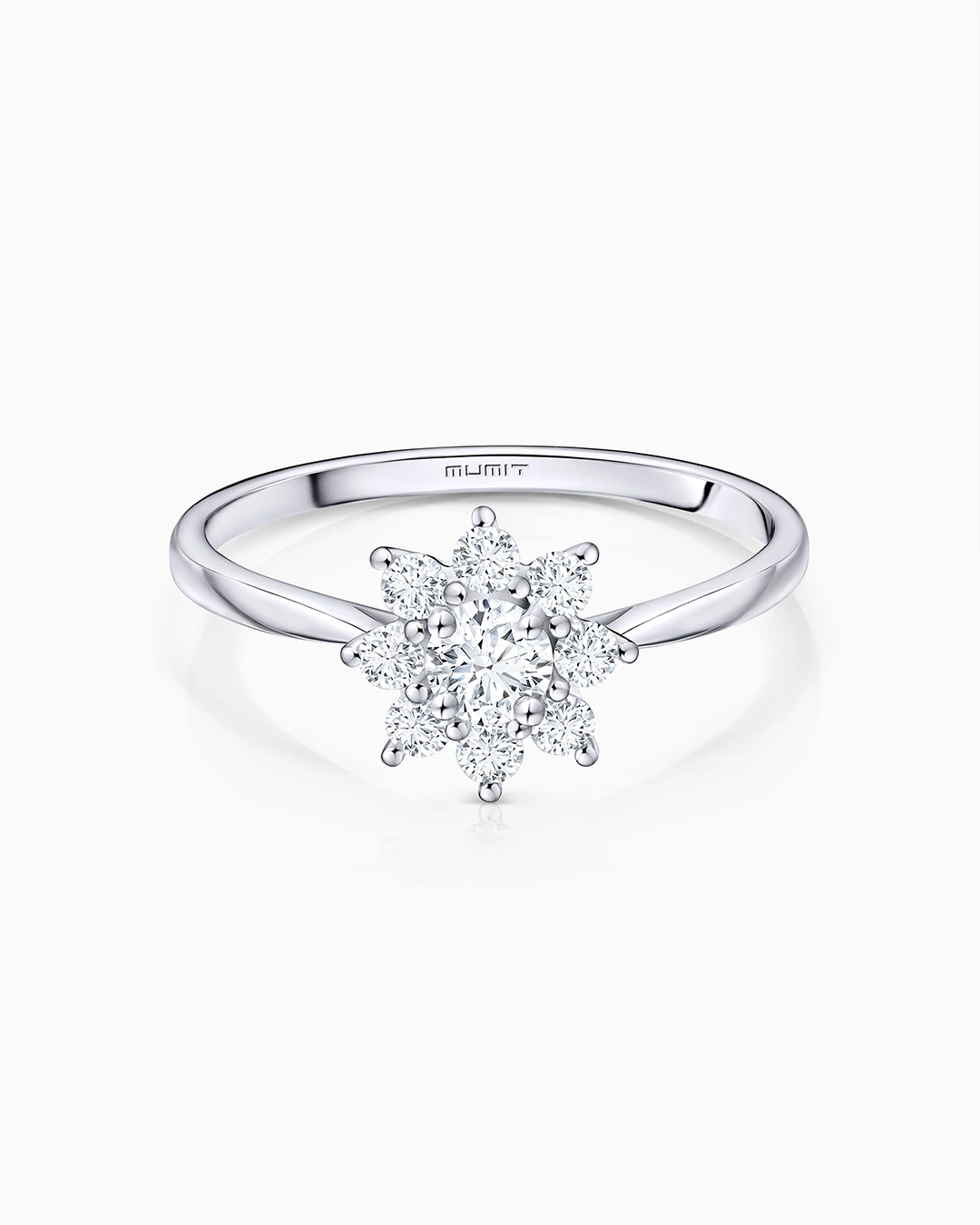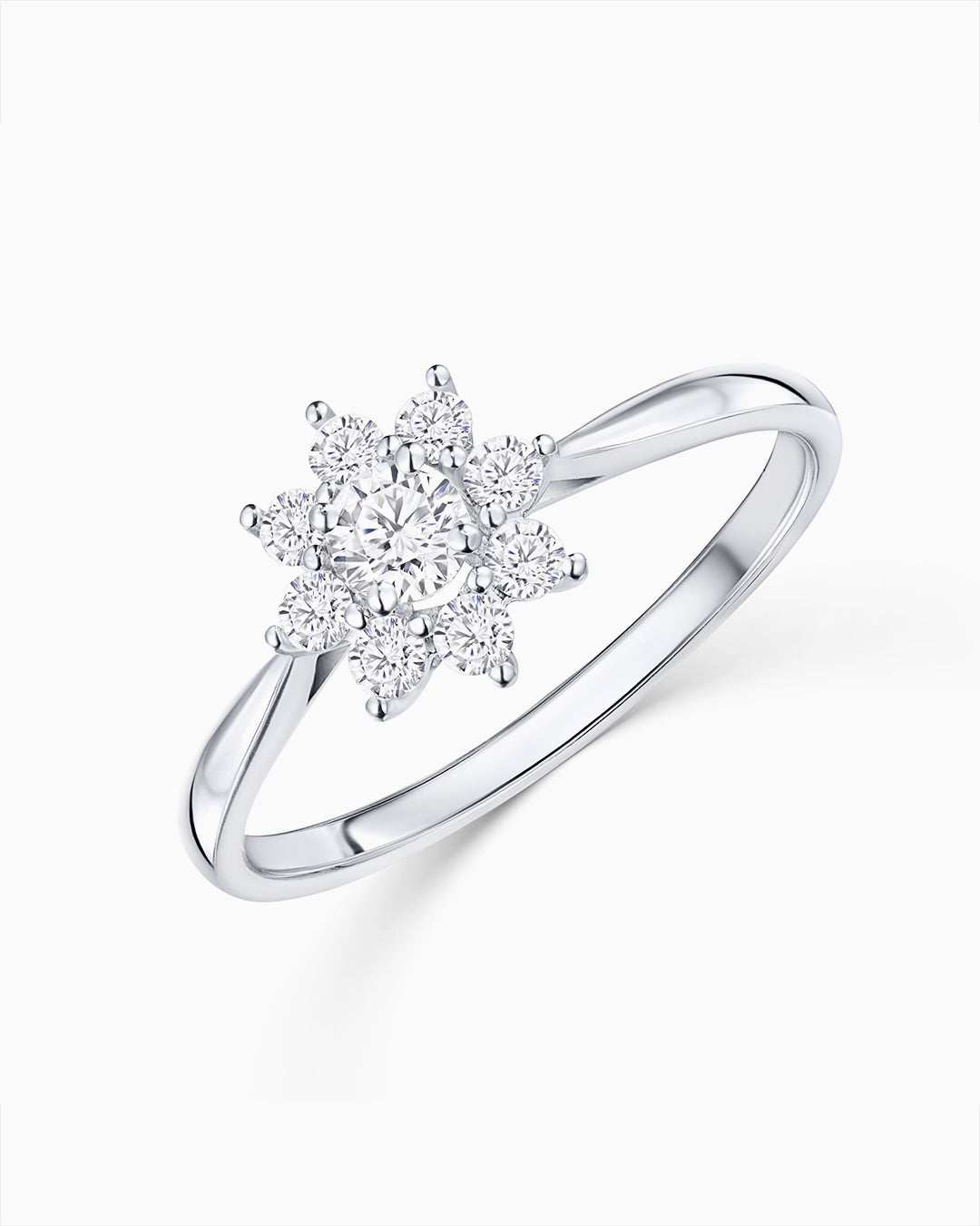 Sortija Rosette Solitaire de Diamantes 0,48 Cts. en Oro Blanco de 18 Kt