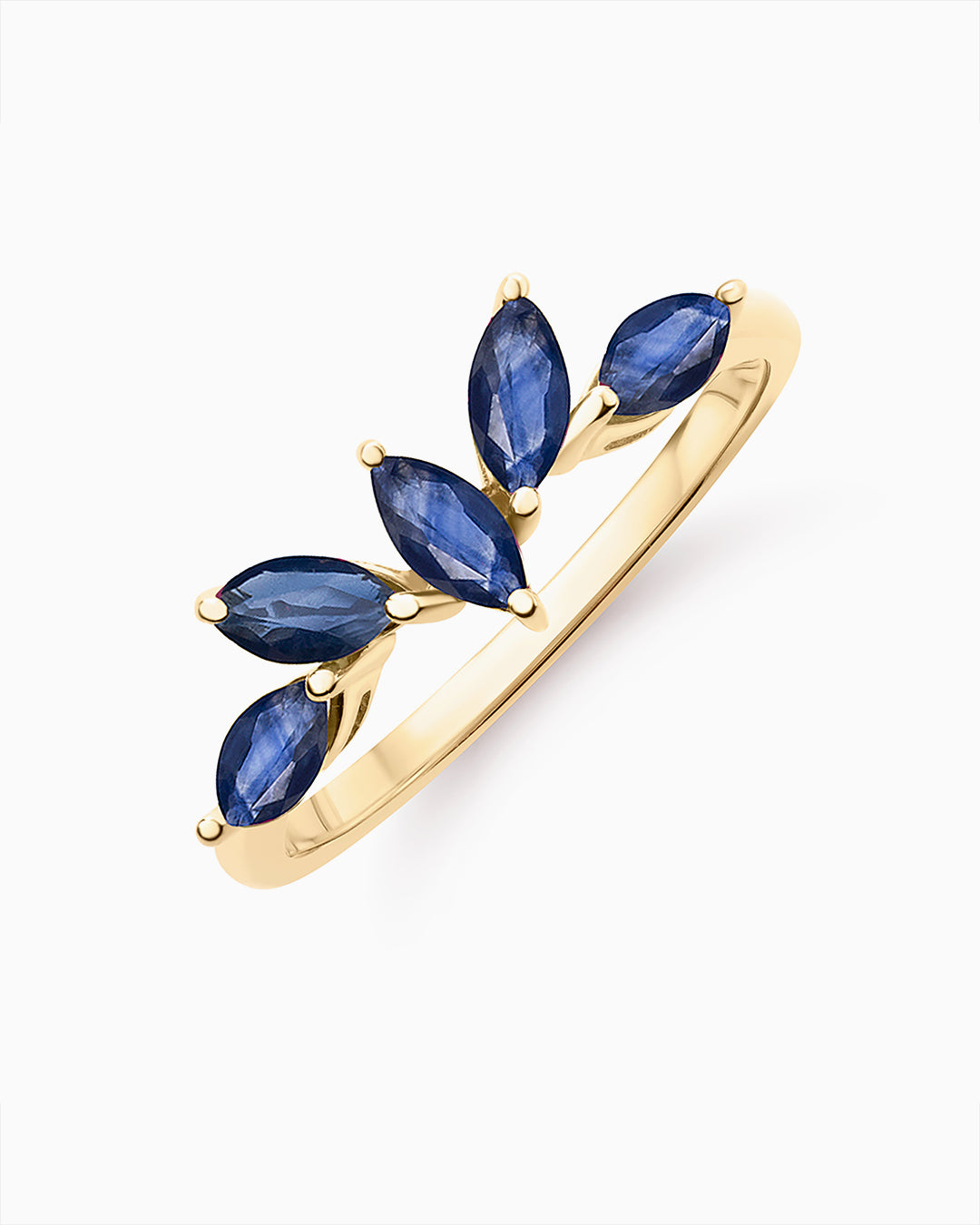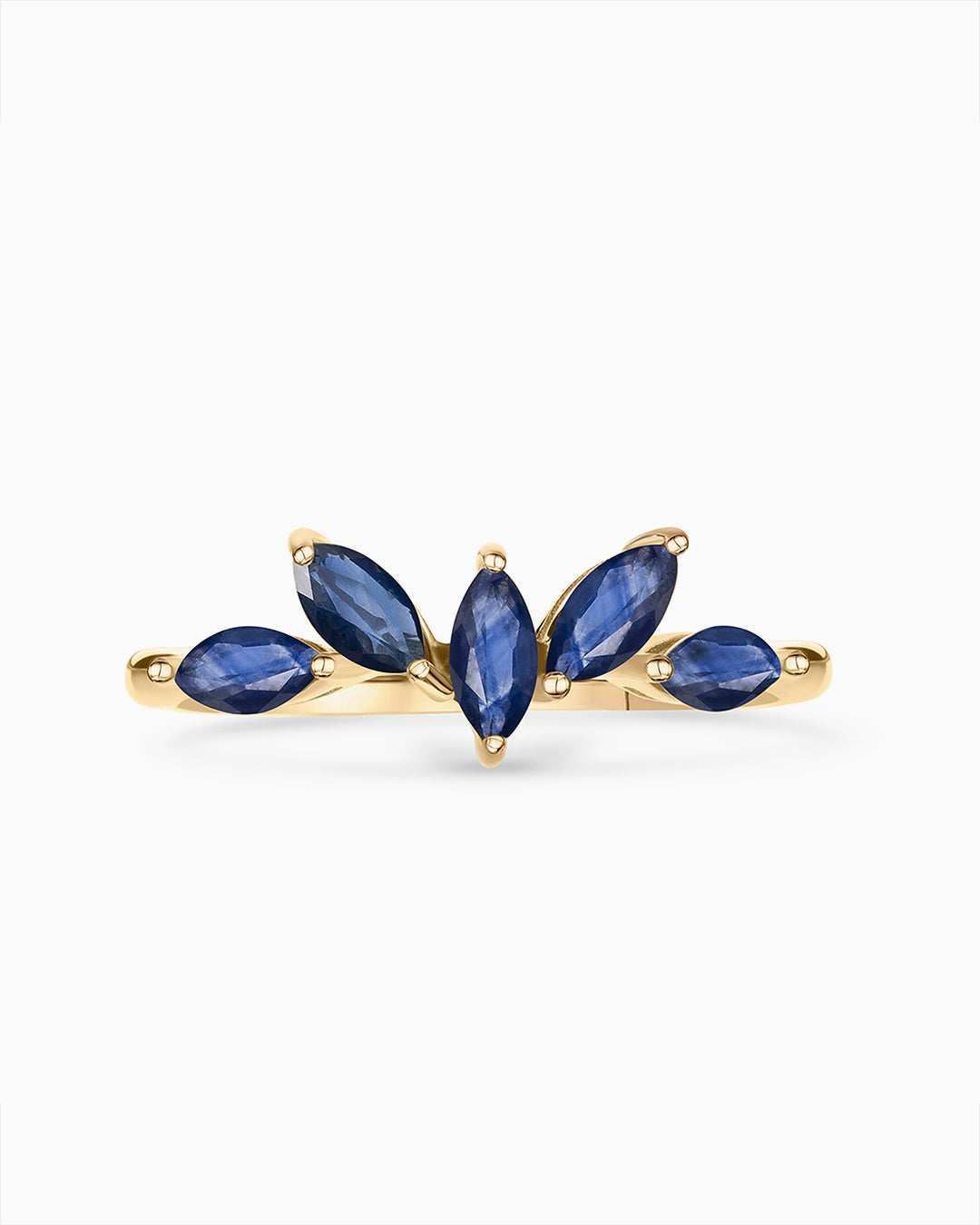 Sortija de zafiros en talla marquesa montados en oro amarillo de 18 Kt. Vanguardia, técnica y color se plasman en las excepcionales sortijas Tri-Marquise de esmeralda, zafiro y rubí. Inspiradas en las formas de la naturaleza y diseñadas para hacerte brillar en cualquier ocasión, estas joyas son una original declaración de estilo en las que el color pasa a ser el lenguaje de nuestro yo más auténtico. Su vanguardista y versátil diseño se caracteriza por sus cinco zafiros de talla marquesa que se unen trazando una sorprendente forma. Se trata de una pieza de joyería en la que el color cobra vida, pensada para una mujer contemporánea que busca una pieza única y con personalidad que será guardada como un tesoro de por vida.Las sortijas Tri-Marquise están disponibles en tres versiones con esmeralda, rubí o zafiro montadas en oro amarillo de 18 Kt.