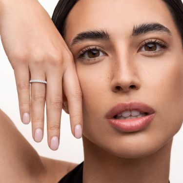 Nuestras exclusivas medias alianzas de oro de 18 kt destacan por el perfecto equilibrio entre sofisticación y comodidad que presentan sus diferentes diseños. Las piedras preciosas utilizadas son seleccionadas una a una para que solo las más deslumbrantes pasen a contar tu historia. Explora una selección ideal para las que buscan un anillo media alianza más versátil sin renunciar al glamuroso brillo de los diamantes.