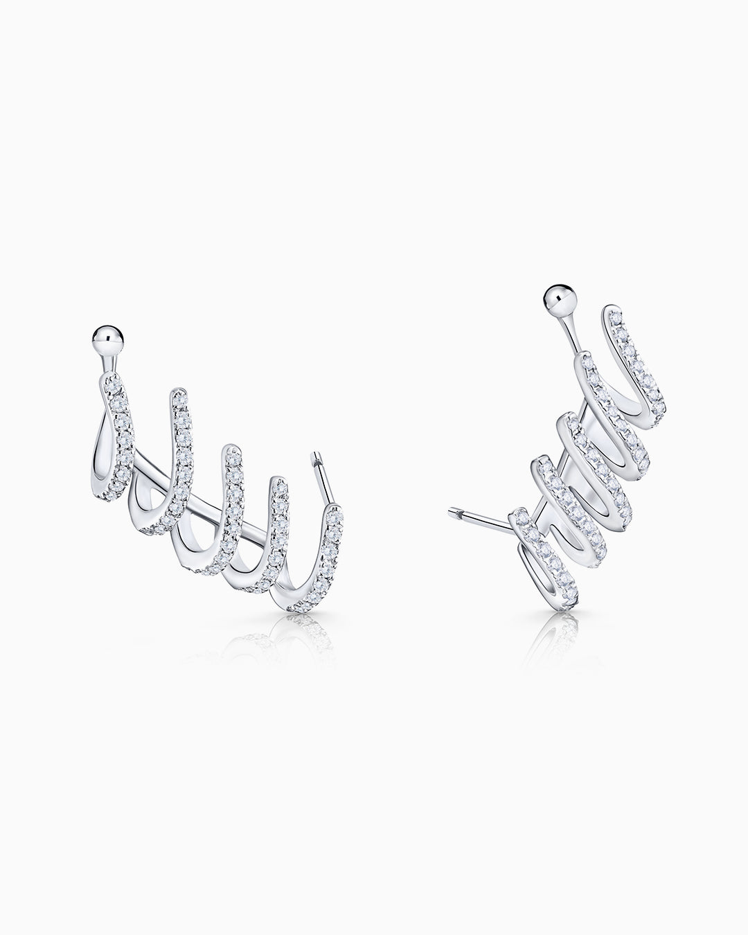 Pendientes tipo ear cuff Torubillon de diamantes elaborados en oro blanco de 18 Kt. Un torbellino...