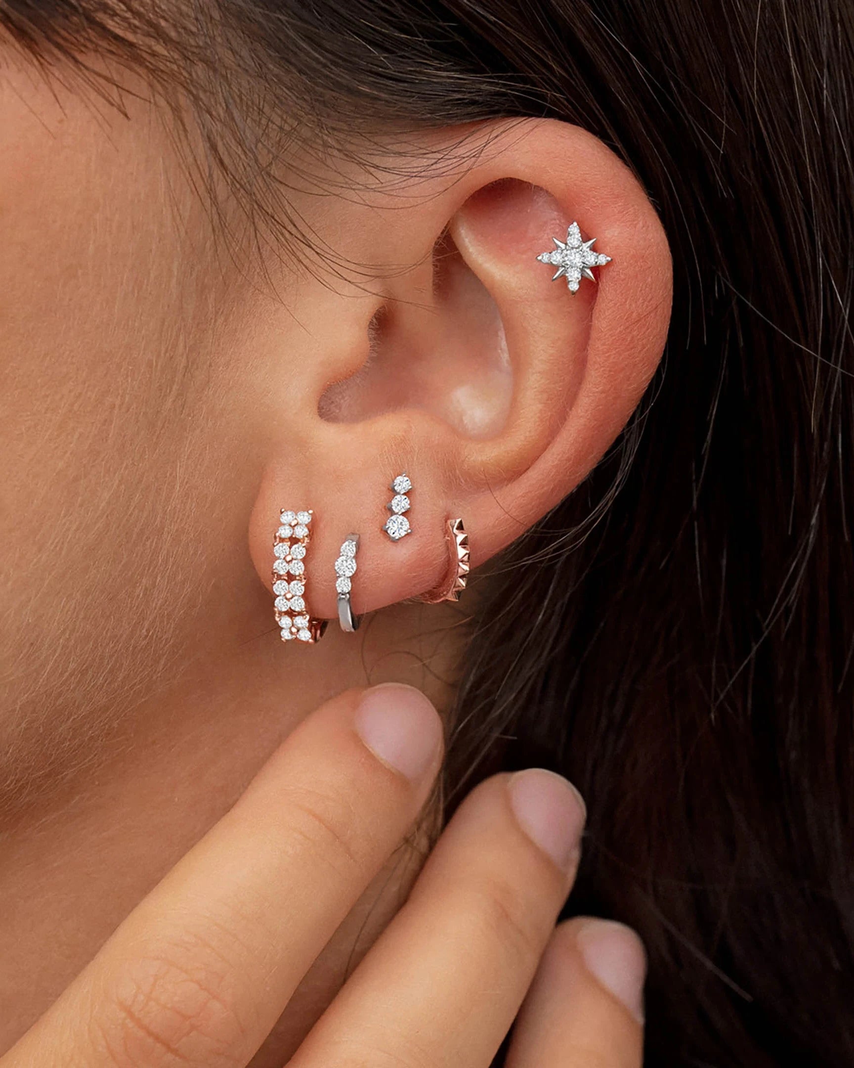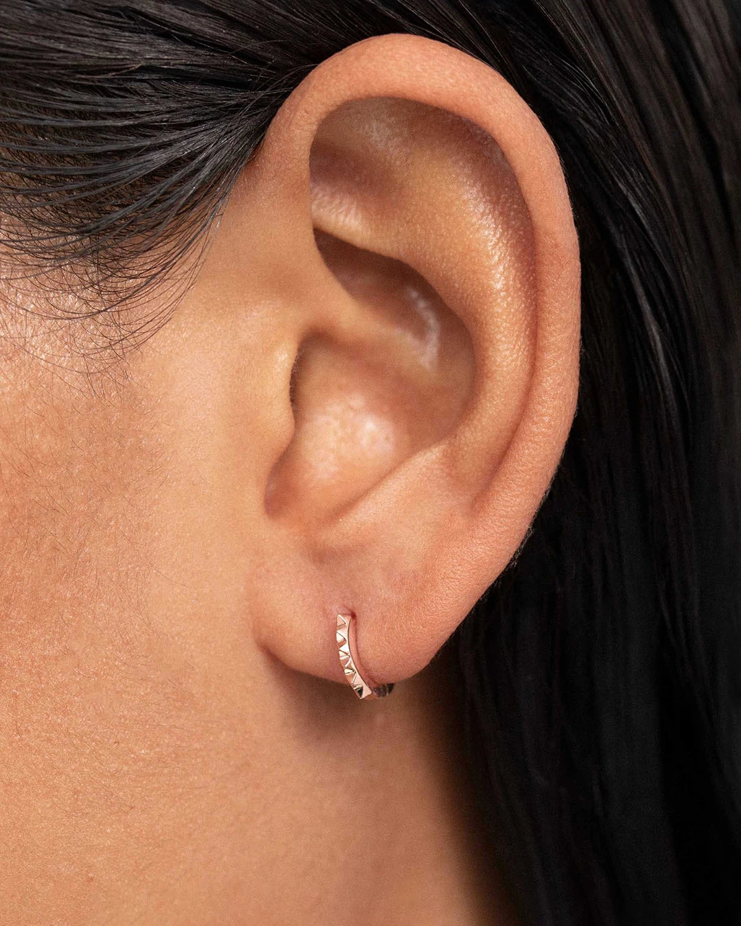 Pendiente tipo piercing de aro Punk elaborado en oro rosa de 18 Kt. Este piercing es el toque 'punk' que estabas buscando para tu oreja, ligero e ideal para no quitártelo nunca. Elaborado en oro rosa de 18 Kt, su original diseño de sutiles pinchos en relieve le aporta un punto de modernidad que te enamorará. Cuenta con un diámetro de 7 mm lo que permite su ajuste en cualquier pendiente, además, incorpora un cierre tipo congo lo que facilita su puesta y adaptación en cualquier zona de la oreja.El pendiente piercing de aro Punk está disponible en tres versiones, oro amarillo, rosa y blanco de 18 Kt. ¡Únete a la tendencia de moda y crea tu ear look con Mumit!.