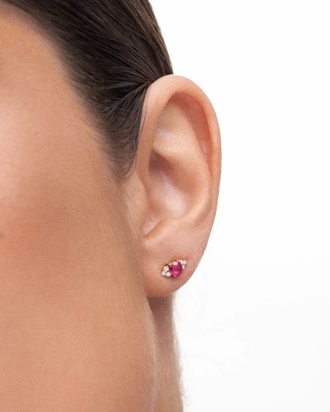 Pendiente Piercing Crown II de Rubí en Oro Amarillo de 18 Kt. Inspirado en la historia de la realeza que se mantiene viva a través del brillo de las joyas más preciadas, las coronas y tiaras reales. Las piezas de la colección Crown son una exquisita interpretación minimalista de las imponentes gemas que daban vida a las joyas de La Corona. Una joya llena de color y brillo, la perfecta fusión entre elegancia y modernidad cuyo protagonista es un rubí central custodiado por seis diamantes en talla brillante.Cada pendiente piercing de la colección Crown II ha sido diseñado teniendo en cuenta los ángulos de la oreja y su posición, haciendo de esta pieza una joya perfecta para hélix, cartílago y anti-hélix.Los piercings de la colección Crown están disponibles en oro amarillo de 18 Kt y en varias versiones, con gema central en talla brillante, marquesa, pera y oval, con rubí, esmeralda o zafiro.