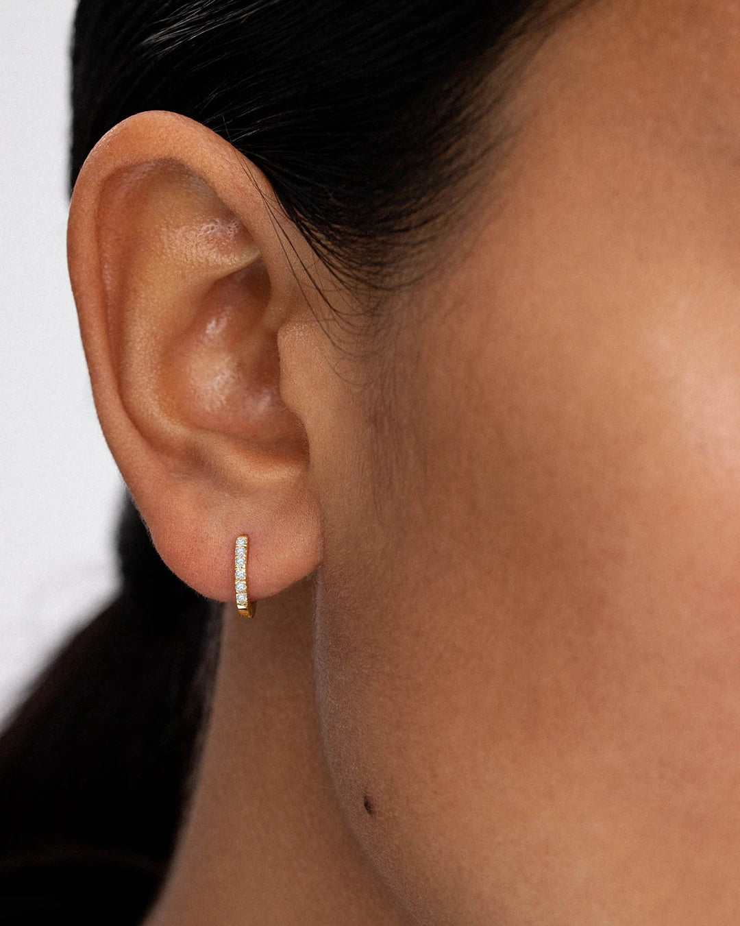 Pendiente Piercing Petite Diamonds MINI de diamantes engastados en oro amarillo de 18 Kt. Este pe...
