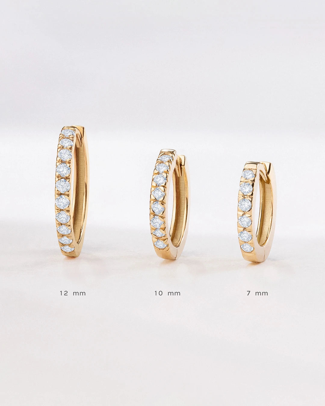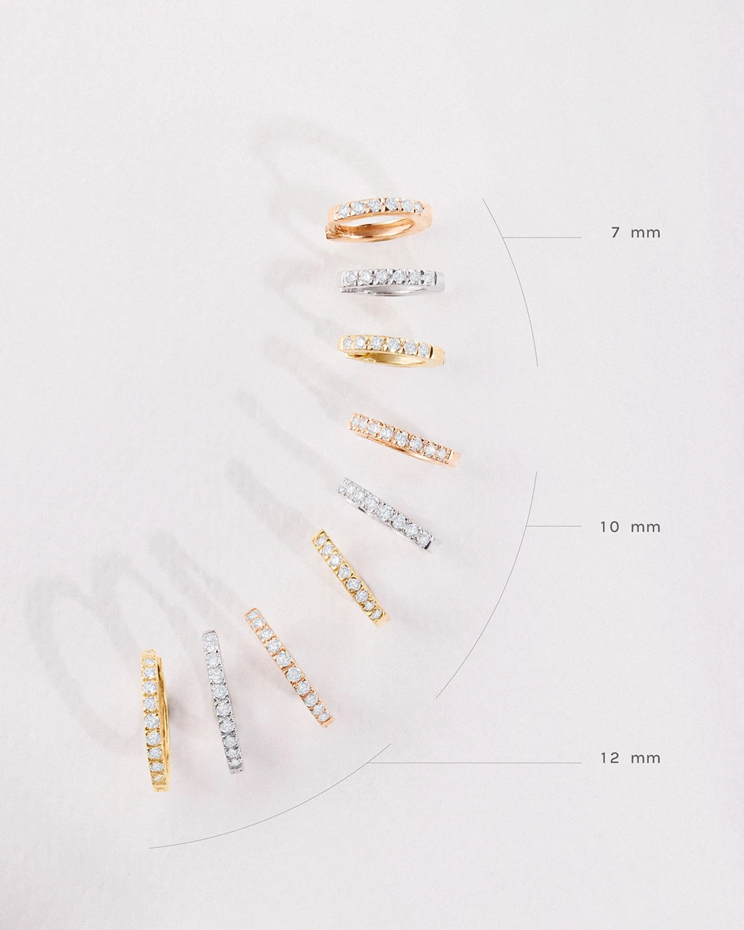 Pendiente Piercing Petite Diamonds MINI de diamantes engastados en oro amarillo de 18 Kt. Este pendiente es el básico que estabas buscando para tu oreja. Elaborados en oro amarillo de 18 Kt y adornados con un maravilloso pavé de seis brillantes diamantes en talla brillante. Este pendiente, gracias a su aro de 7 milímetros, posee el tamaño ideal para llevarse en cualquier localización de la oreja, queda especialmente bien en tragus y en cartílago. Cuenta con un cierre tipo congo de aro que favorece la facilidad de ajuste y cierre. Este piercing es totalmente versátil, combínalo con las otras dos versiones en 19 y 12 milímetros para crear un juego de luz y alturas. El pendiente Piercing Petite Diamonds aro MINI tiene el diámetro exacto para combinarse con toda la colección Charms by Mumit.