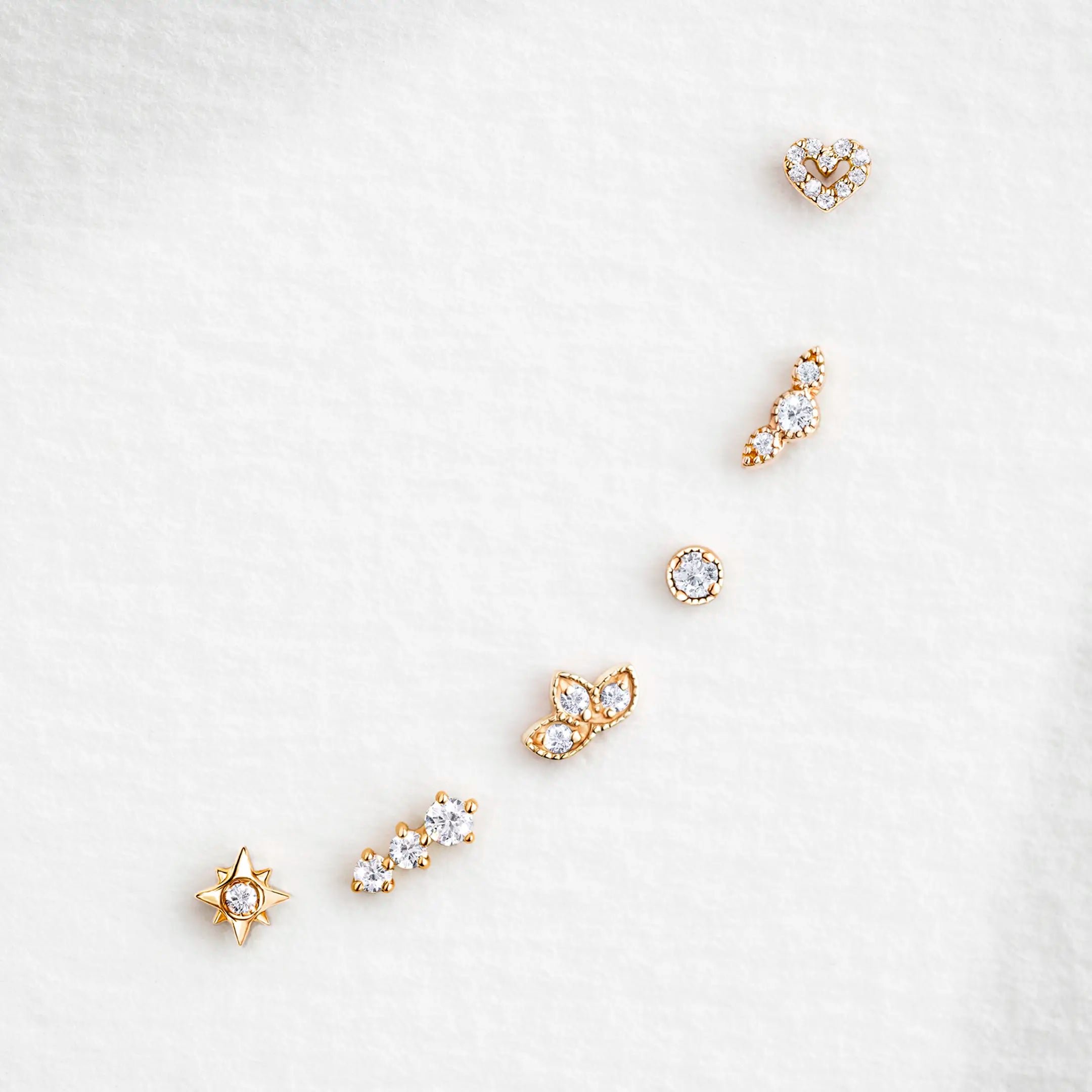 Los pendientes piercings para el lóbulo de Mumit elaborados en oro amarillo, blanco o rosa de 18 Kt son el complemento ideal para crear sorprendentes combinaciones de colores y formas. Desde pendientes tipo aro de diamantes con diferentes tamaños hasta delicadas formas de rayo, estrellas, etc. ¡Combina los piercings para lóbulo y reinventa tu oreja!