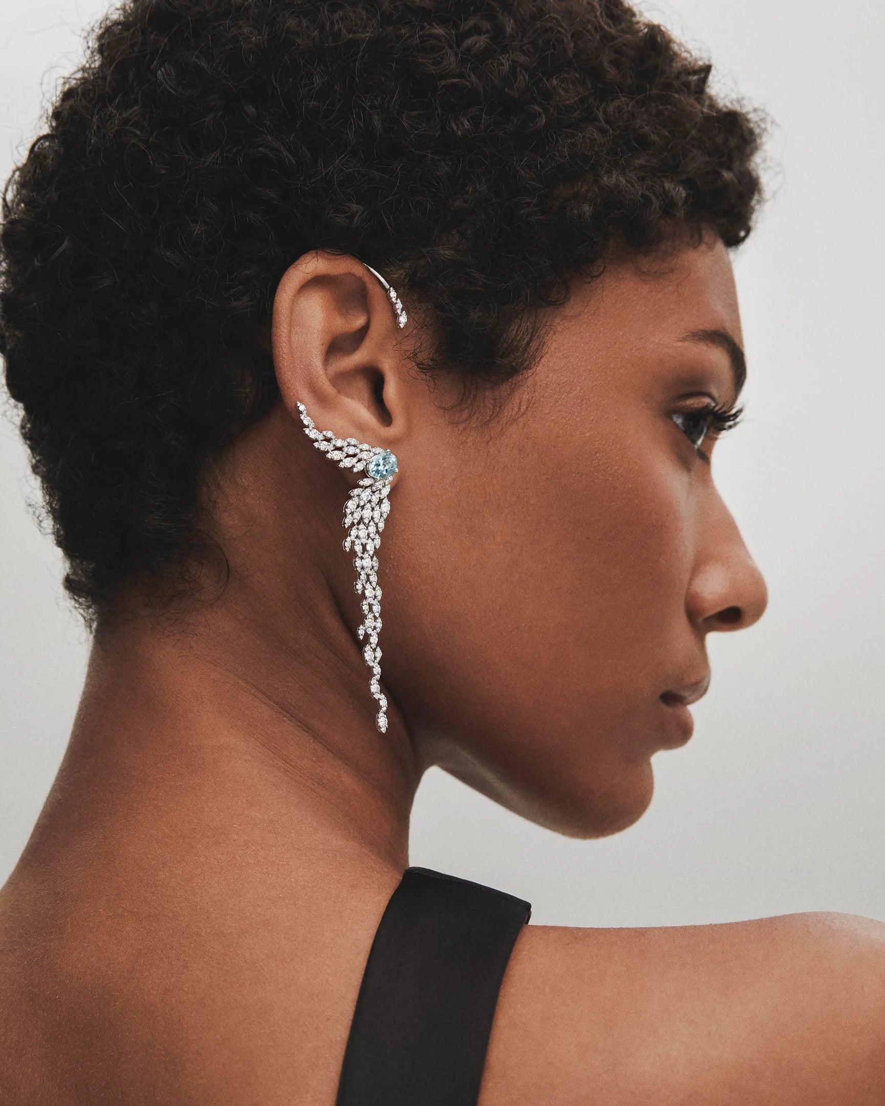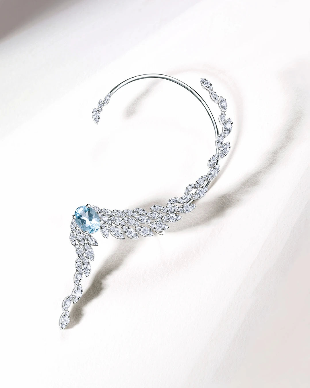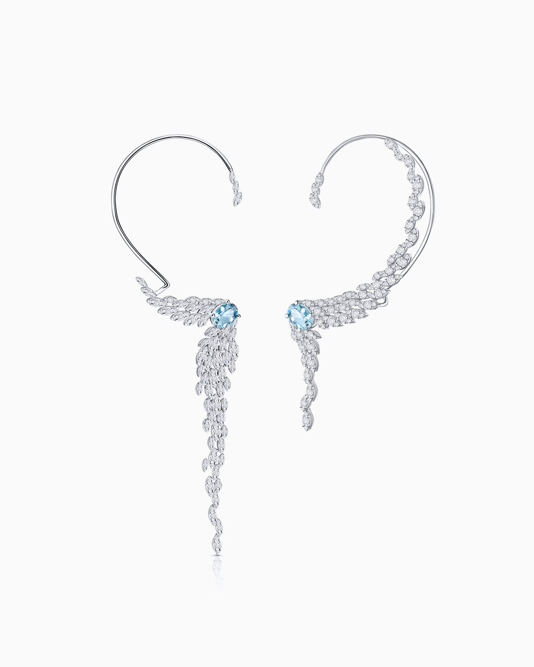 Pendientes Blue Jay de aguamarina y diamantes elaborados en oro blanco de 18 kt. La colección Jay ocupa un lugar destacado en el legado de Mumit, tanto por su belleza como por su valor artístico. Inspirada en un reino de fábula, Jay rinde tributo a las legendarias aves que impregnan de encanto y majestuosidad cada rincón de estas tierras. Blue Jay es la indisputable soberana de la colección. Como tal, las aguamarinas que define el carácter de estos pendientes presentan una claridad excepcional y una riqueza cromática asombrosa. Por otro lado, las líneas orgánicas del diseño evocan la silueta de las alas del ave en pleno vuelo, reflejando la gracia y el dinamismo que podemos observar en la naturaleza. Asimismo, esta impresionante creación adquiere un resplandor sin igual gracias a un conjunto de diamantes naturales cuidadosamente seleccionados para ensalzar su belleza de forma sublime. Descubre una expresión suprema de distinción con los pendientes Blue Jay, piezas de alta complejidad y artesanía exquisita creadas para deslumbrar en las ocasiones más especiales. Los pendientes Blue Jay de diamantes y aguamarinas también están disponibles como pendiente individual.