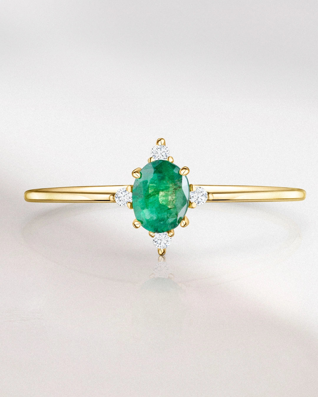 Sortija Crown Oval de Esmeralda en Oro Amarillo de 18 Kt