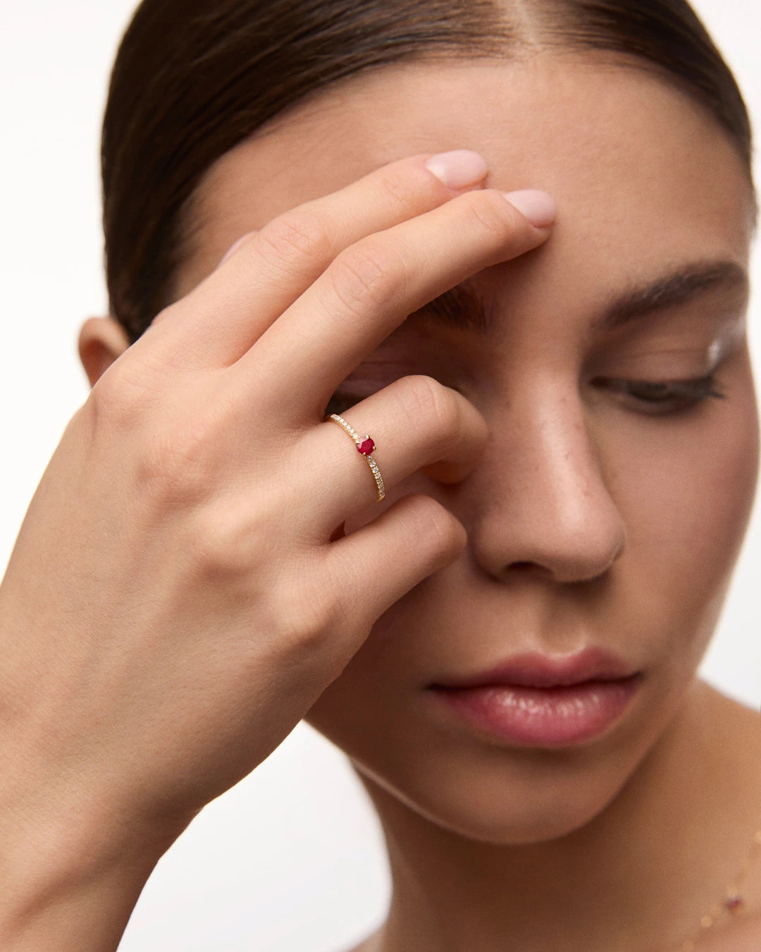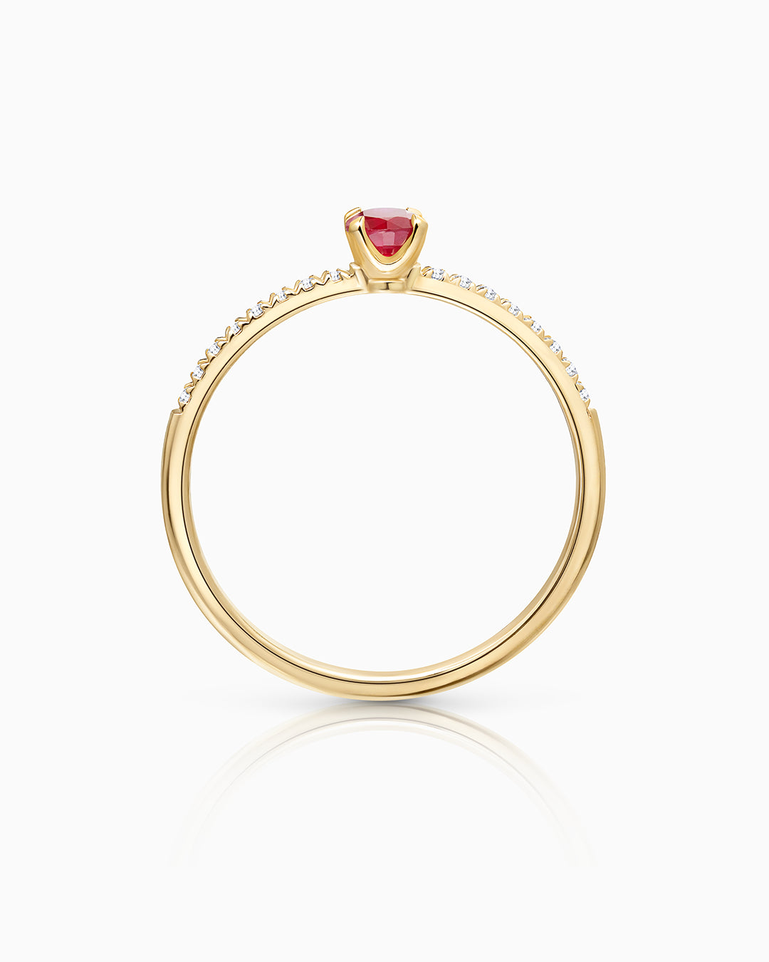 Fresca, alegre y sofisticada. Sylvie nace como una alternativa colorida y versátil al solitario tradicional. En el centro del diseño encontramos un exquisito rubí en talla brillante, acompañado por el brillo de un pavé de diamantes naturales que recorre el brazo de la pieza y ensalza la presencia de la gema central. La montura, elaborada en oro amarillo de 18 quilates, crea un contraste cálido que atrae la atención sin sobrecargar el conjunto. Concebida para añadir un exclusivo toque de color a cualquier colección de joyas, esta sortija resulta ideal para combinar con piezas de inspiración minimalista.