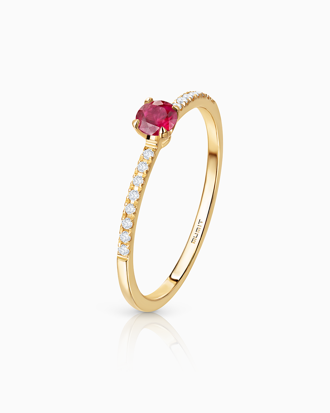 Diamantes naturales Mumit. Montamos en cada una de nuestras creaciones exclusivamente diamantes de origen natural. Ponemos especial atención a la importancia de la trazabilidad de la procedencia de los mismos, asegurándonos de que provienen de países que participan plenamente en el Sistema de Certificación del Proceso de Kimberley. Certificados por el laboratorio GIA garantizamos que cada diamante montado en nuestras creaciones cuenta con un grado de color comprendido entre el color D y G, así como una claridad comprendida entre IF y SI, y un grado de talla comprendido entre Excelente y Bueno.