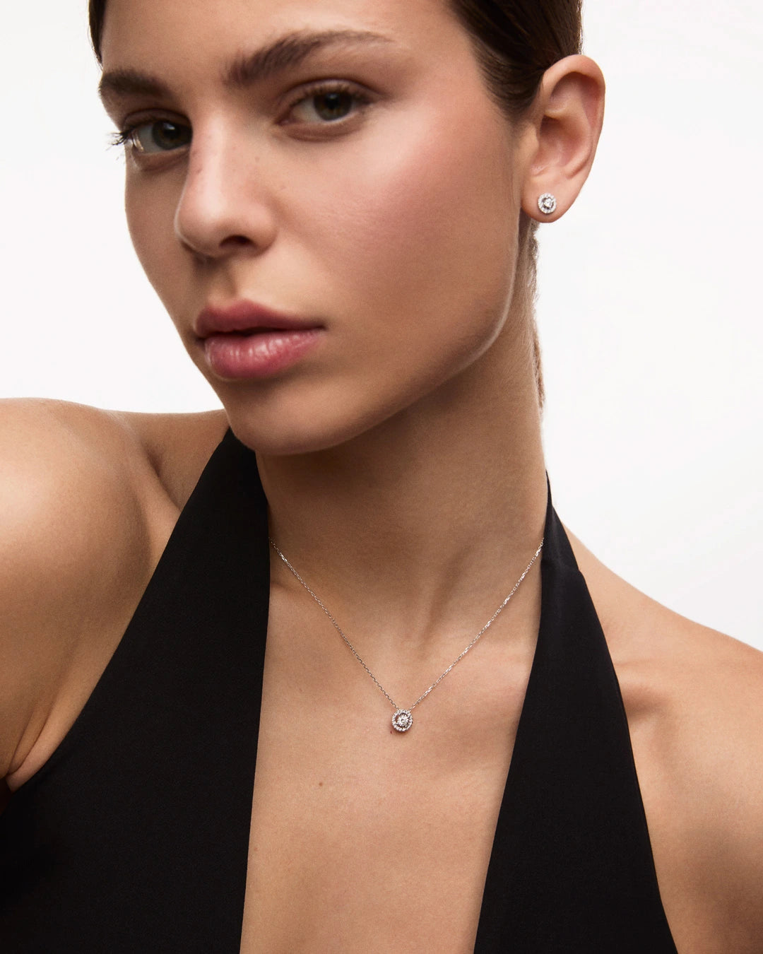 Inspired by the mysterious beauty of the night sky, the Ariadne earrings fuse ancient symbolism with contemporary sophistication. Ariadne, princess of Crete, helped Theseus escape the labyrinth of the Minotaur with a luminous crown. According to legend, this symbol of love and bravery was later cast into the sky, forming the Corona Borealis constellation. The design of the earrings reflects the splendour of this celestial tiara with an exquisite brilliant-cut solitaire, encircled by a delicate diamond halo. The space between the central stone and the surrounding halo creates the optical illusion of a floating crown, tracing an ethereal silhouette. Crafted in 18k gold, the Ariadne earrings celebrate the stories we create to explore the mysteries of the universe and their connection to our lives. A unique piece of jewelry that blends timeless elegance with eternal brilliance, perfect for revealing the poetry written in the stars.