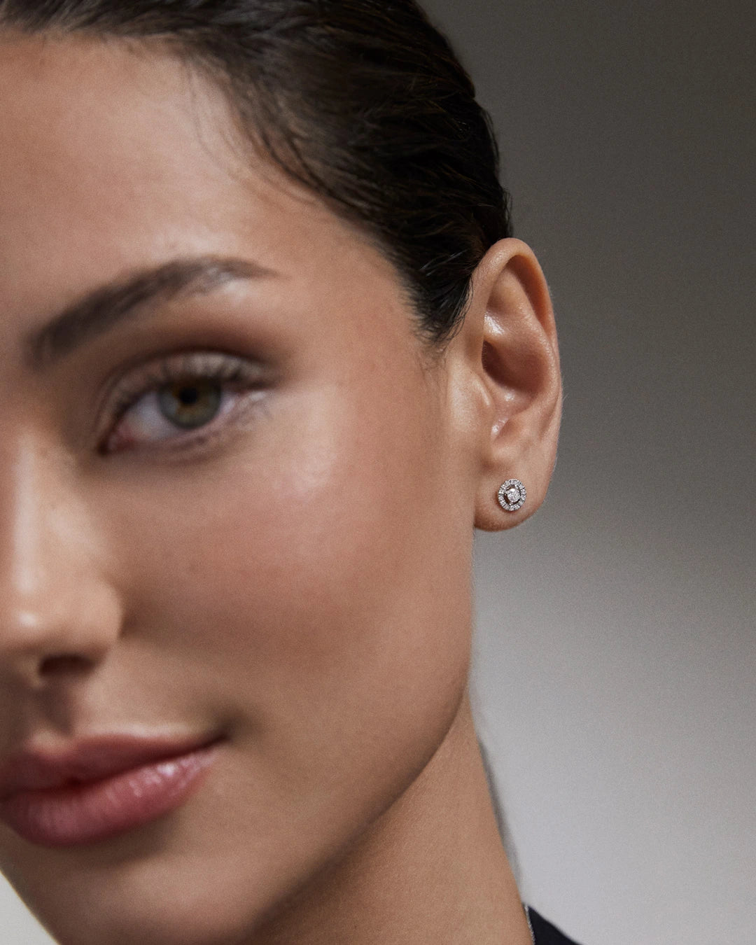 • Brilliant-cut diamond halo: 0.09 ct per earring