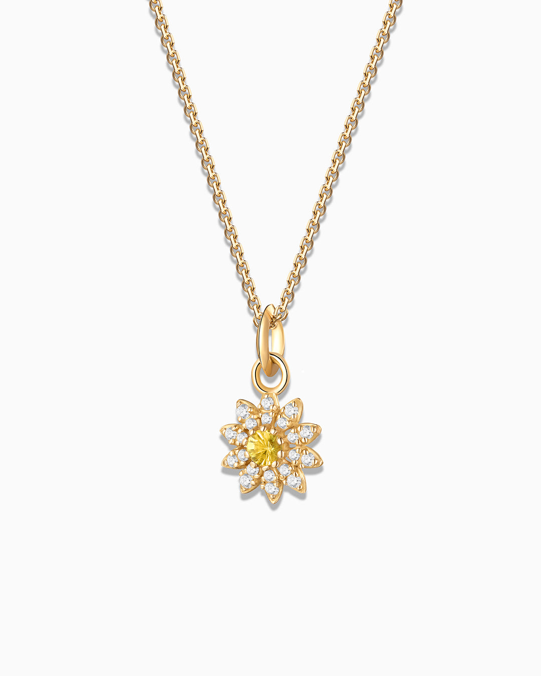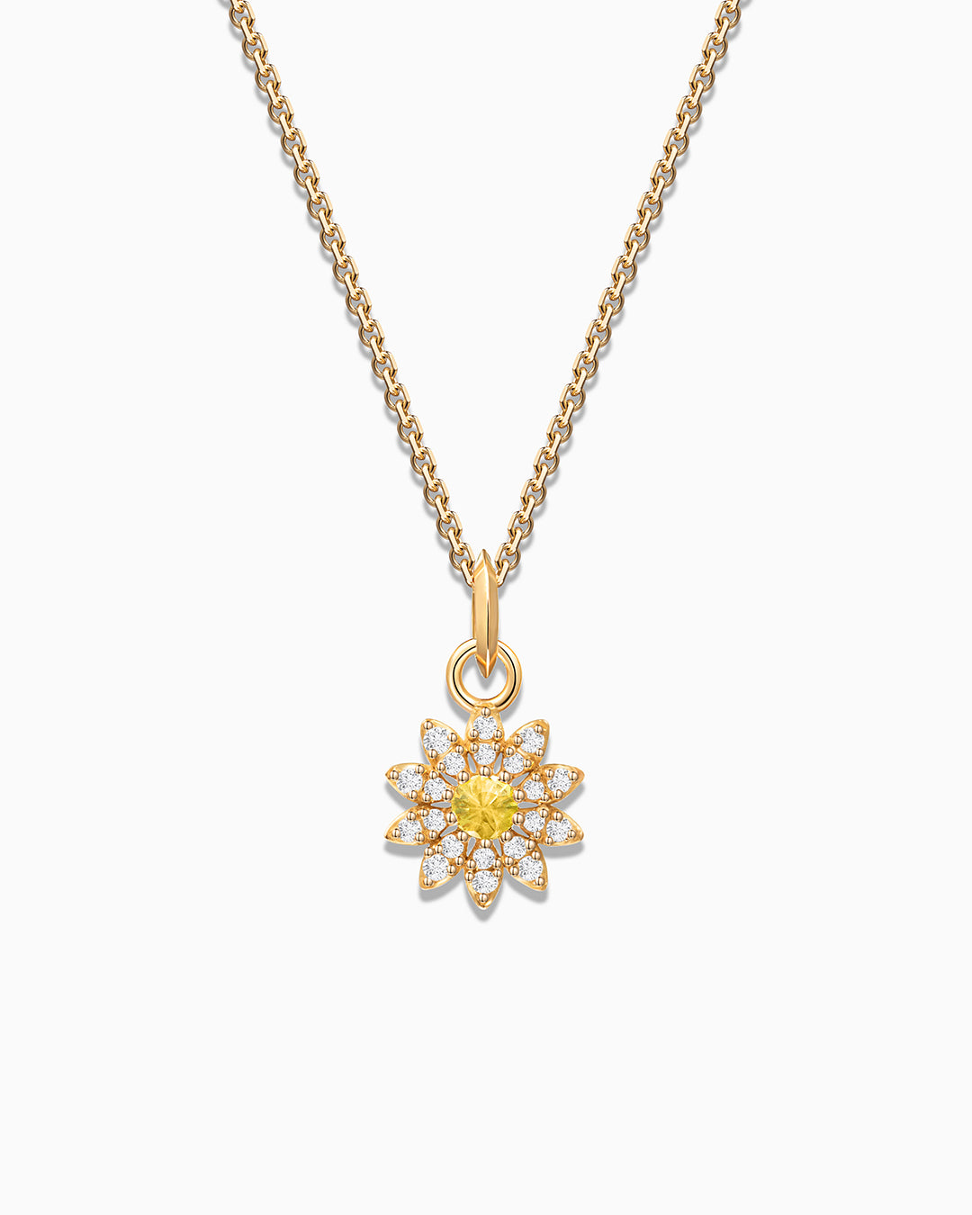 Small Daisy yellow sapphire and diamond charm pendant in 18k yellow gold. Each of Mumit's Lux...