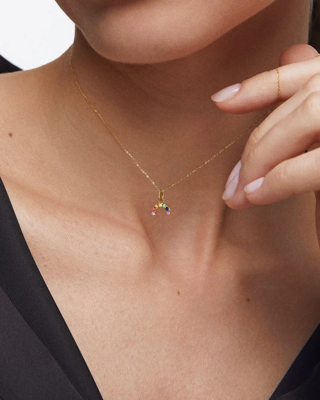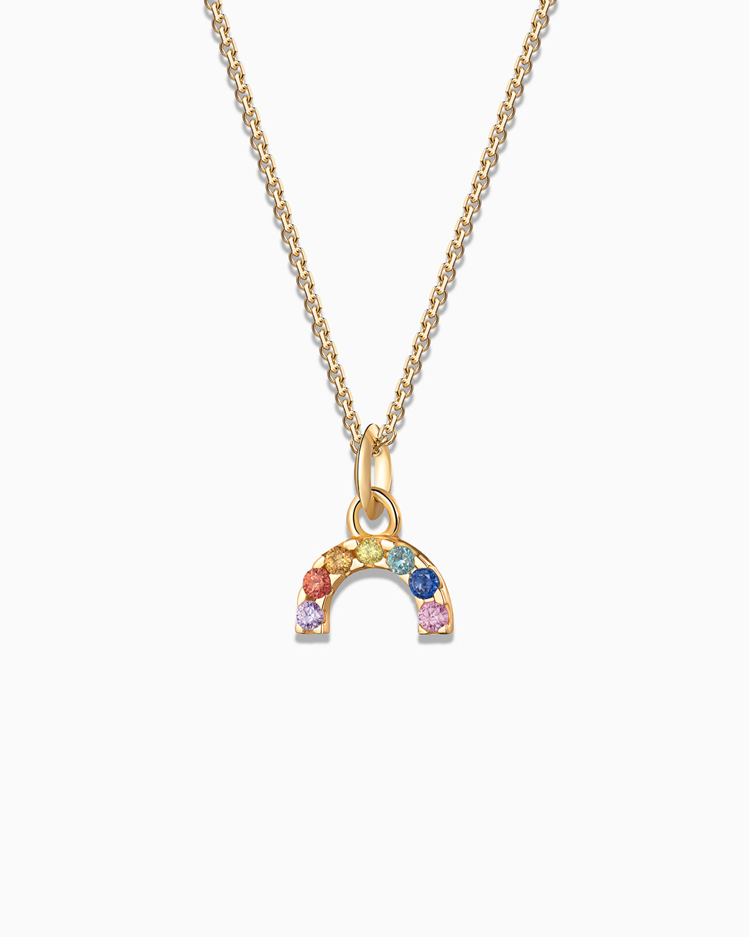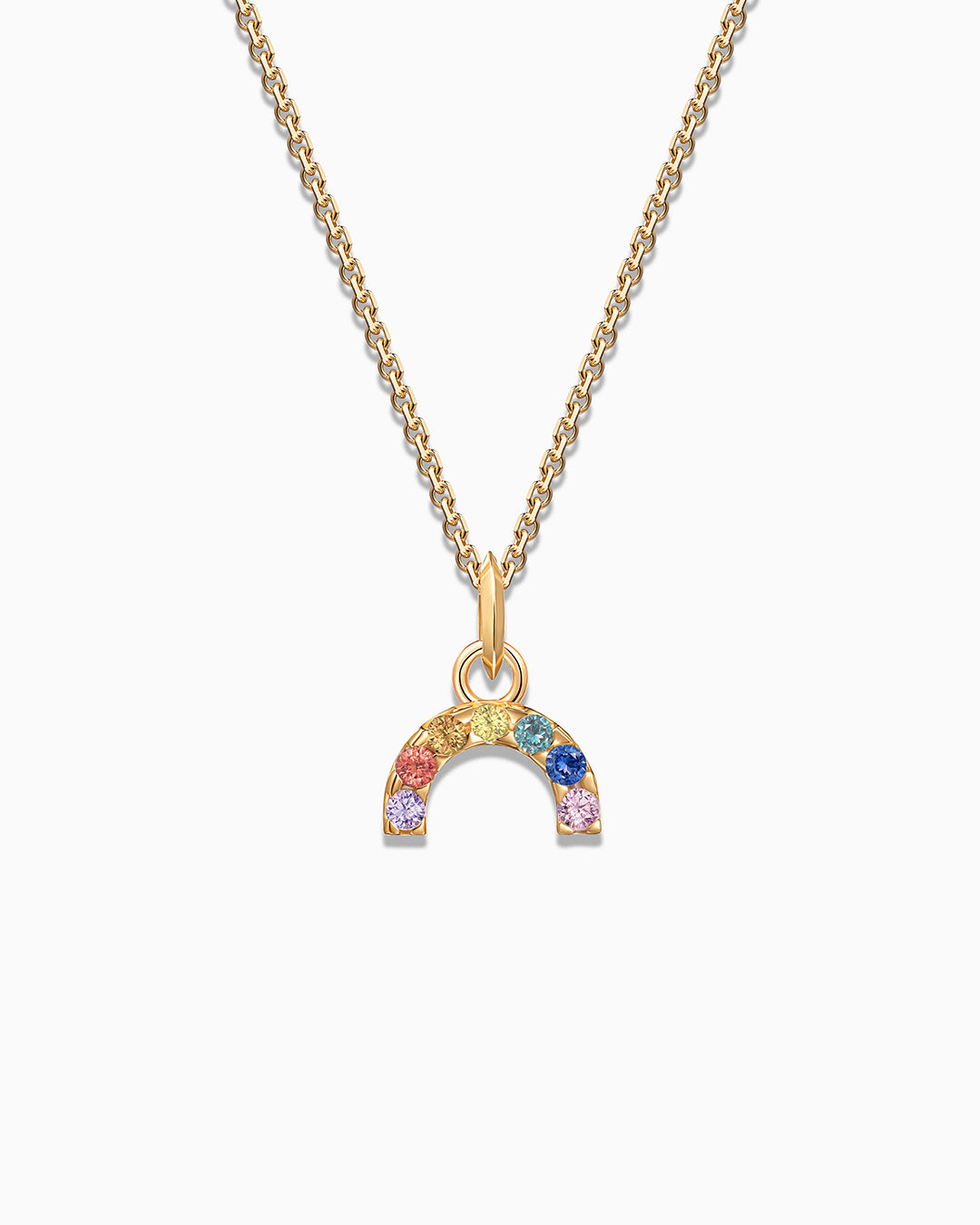 Small Rainbow multicolour sapphire charm pendant in 18k yellow gold. Each of Mumit's Luxury Charms offers an opportunity to connect with your memories, your deepest dreams, or unique aspects of your personality. Thanks to the durability of 18 karat gold, this small talisman that holds immense emotional value will accompany you for a lifetime. Moreover, the bail is a Mumit exclusive design, crafted to achieve a harmonious look when you combine multiple charms on the same chain. Start your own collection and explore the most personal side of the jewelry world. Rainbows are a symbol of: hope, connection, diversity, transformation, peace.