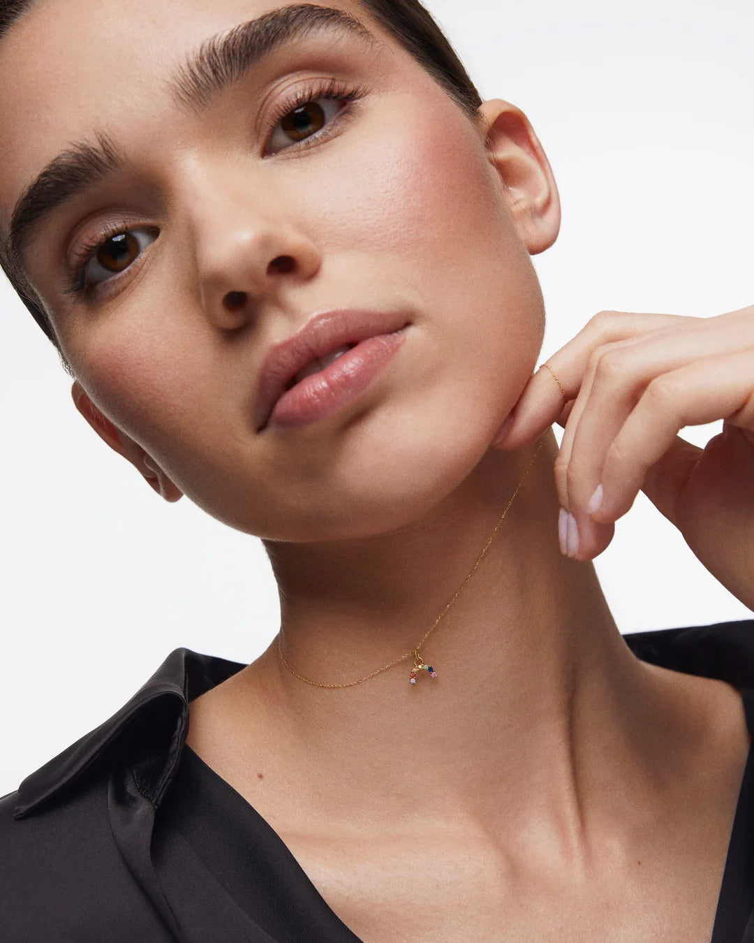 S Rainbow Multicolour Sapphire Charm Pendant in 18k Yellow Gold