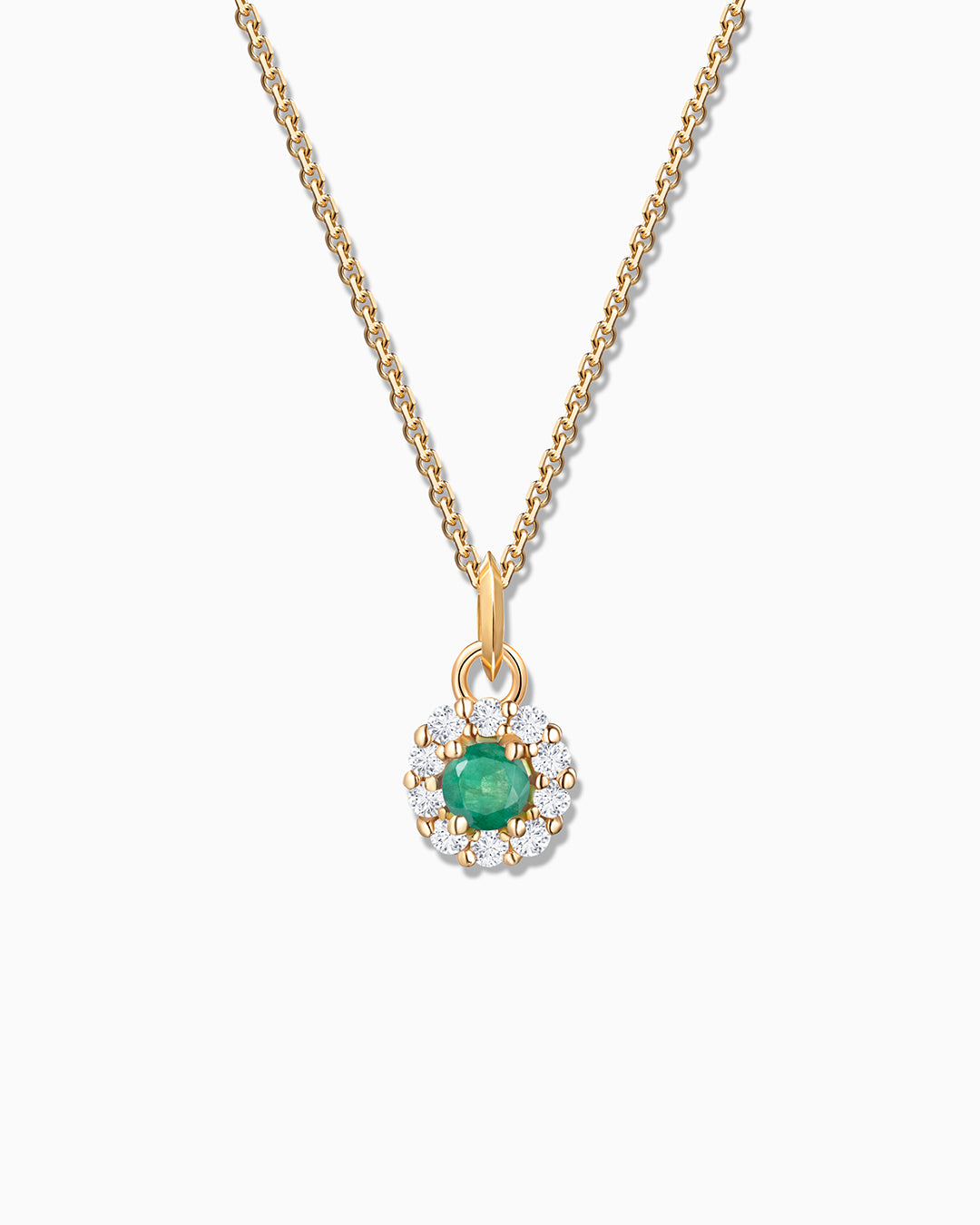 Small Rosette emerald and diamond charm pendant in 18k yellow gold. Each of Mumit's Luxury Charms offers an opportunity to connect with your memories, your deepest dreams, or unique aspects of your personality. Thanks to the durability of 18 karat gold, this small talisman that holds immense emotional value will accompany you for a lifetime. Moreover, the bail is a Mumit exclusive design, crafted to achieve a harmonious look when you combine multiple charms on the same chain. Start your own collection and explore the most personal side of the jewelry world. Emeralds are a symbol of: wisdom, peace, loyalty, vitality, abundance.