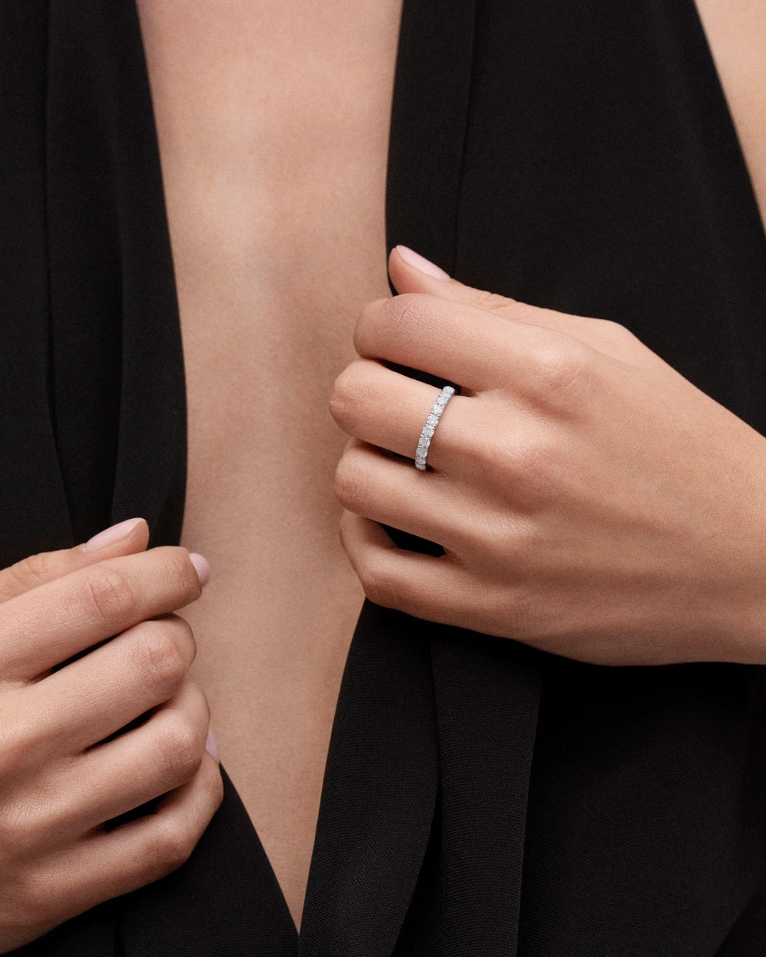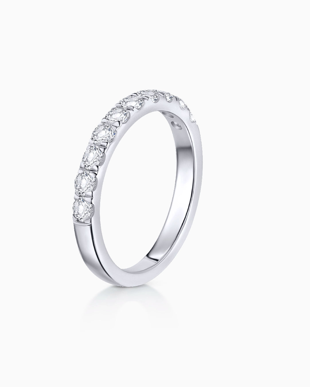 Stella diamond ring crafted from 18k white gold. The unique gleam of the Stella ring represents the pure essence of who we are at the core and the beauty of a sincere promise. This minimalist design stands out for a special setting that lets the maximum amount of light enter the diamonds from every angle, highlighting the unique gleam of each stone. Its magnificent proportions are enhanced by soft and rounded lines, revealing a perfect balance between jeweler know-how and modern sensibilities that redefines classic silhouettes to adapt them to current needs. Comfortable and symbolic, our Stella ring is perfect for everyday wear. The Stella diamond ring is available in four different carat weights: 0.35, 0.50, 0.75 and 1.20.