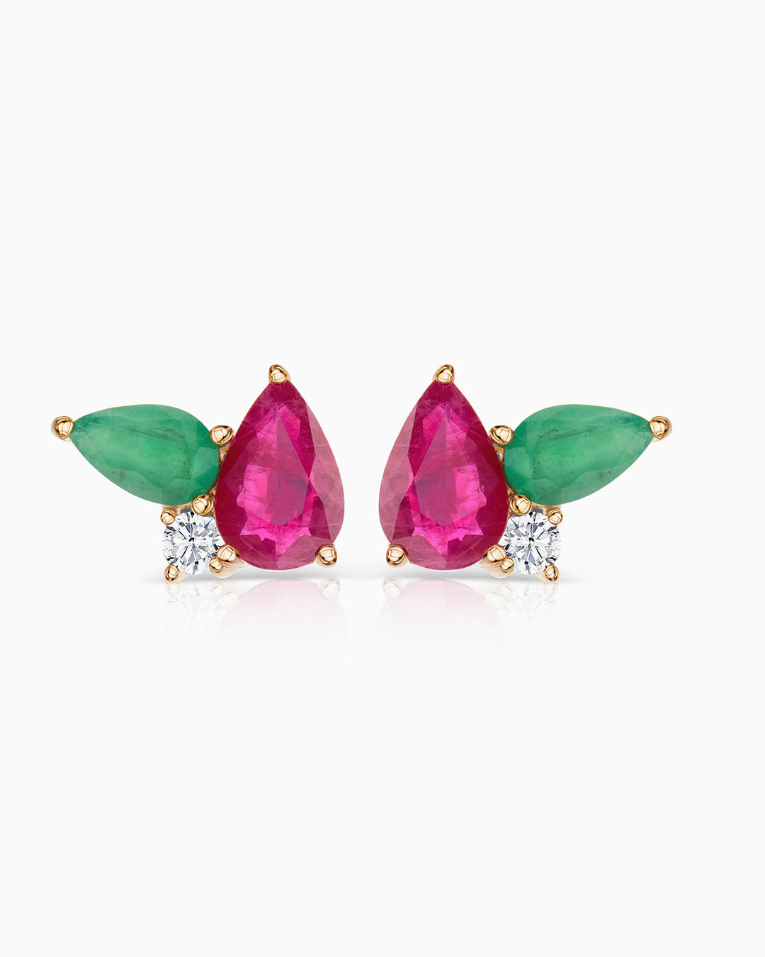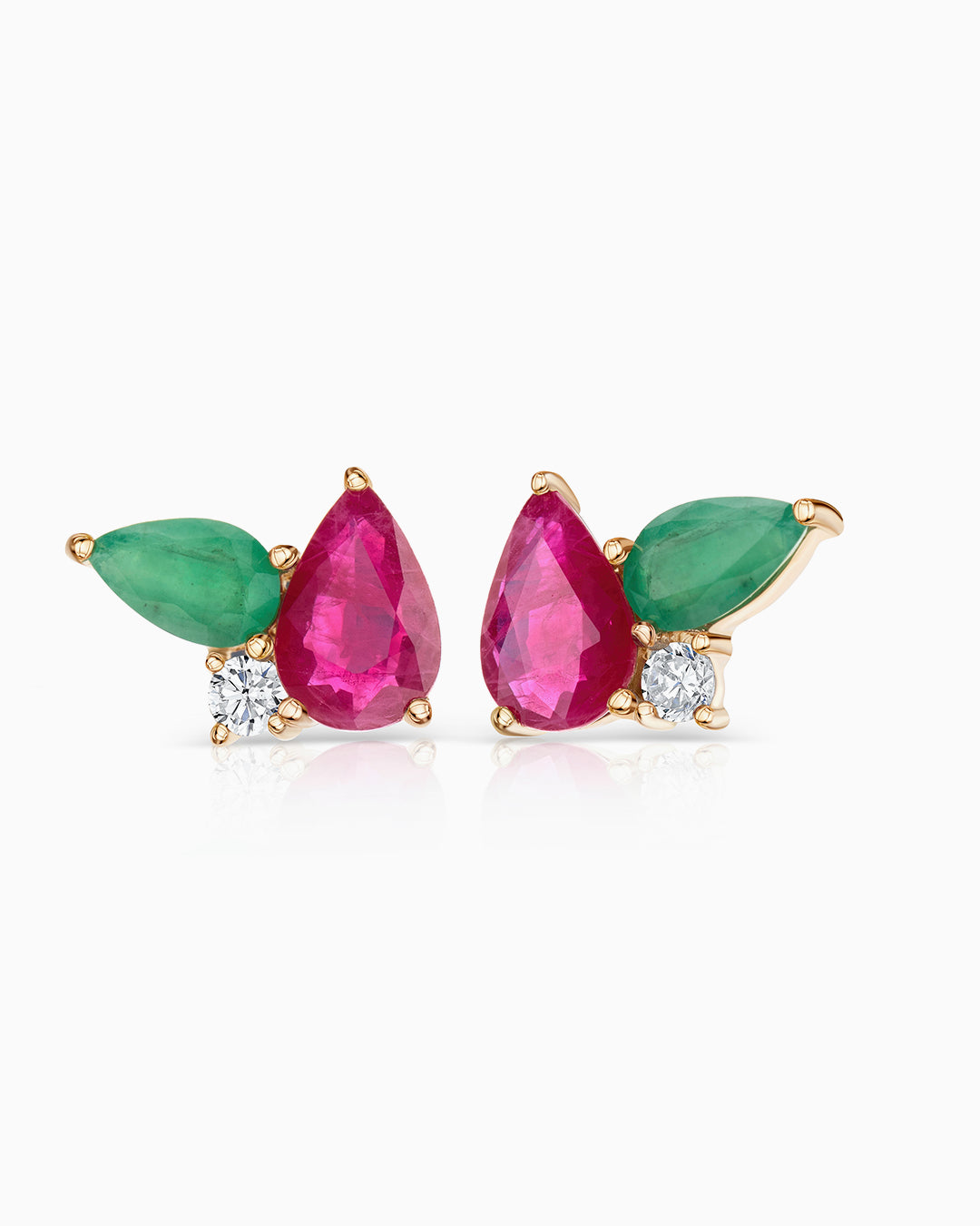 - Eternity Colours Diamond Flower Earrings with Ruby and Emerald