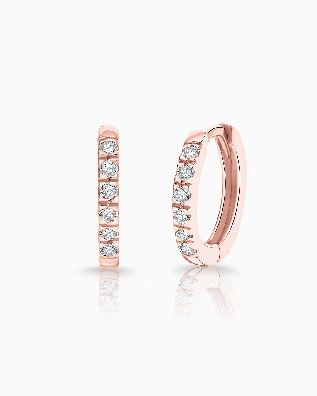 Petit Diamond Mini Hoop Earrings in 18k Rose Gold