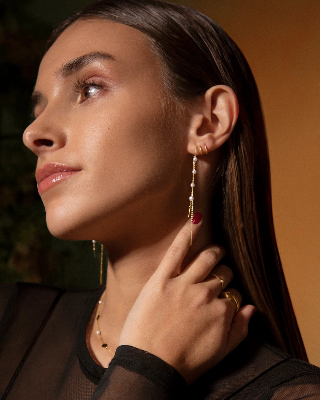 The Mabi Blet collection combines the delicacy of pearls with 18k yellow gold to achieve perfect harmony. Drawing from the minimalist beauty of pearls, the collection embodies both elegance and modernity.