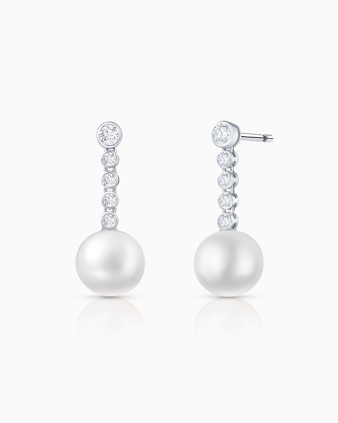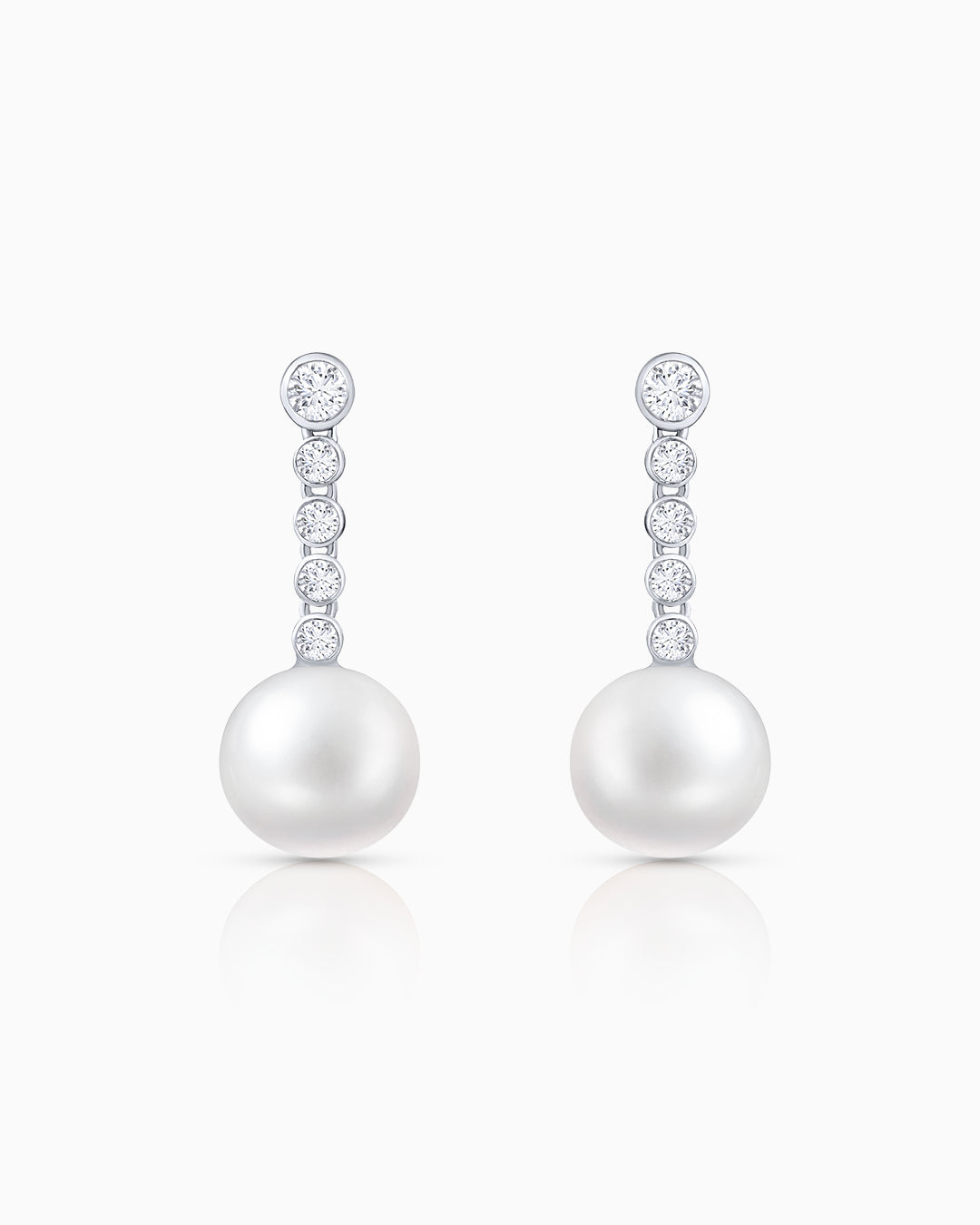 Margot Pearl and Diamond Earrings in 18k White Gold