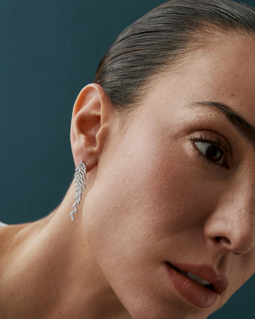 Among the landscapes Van Gogh most deeply admired were the olive groves of Provence, whose timeless beauty inspired the Olivia earrings. As he once wrote, they were “too beautiful for me to dare paint it or even to conceive of it”. Our designers sought to capture this sense of wonder through a delicate arrangement of brilliant-cut diamonds, forming the graceful silhouette of olive leaves. Organic in shape and balanced in composition, the design blurs the line between reality and imagination, evoking the spiritual depth so present in Van Gogh’s work. The Olivia earrings, crafted in 18k gold and set with 1.90 carats of natural diamonds, reflect Mumit’s commitment to artisanal excellence and our passion for where fine jewelry meets art. A tribute to the eternal murmur of the olive grove, they invite you to pause and reconnect with the quiet poetry of the natural world.