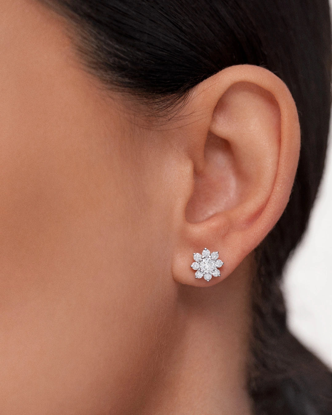 The Rosette solitaire diamond earrings are the main focus of one of our most special collections....