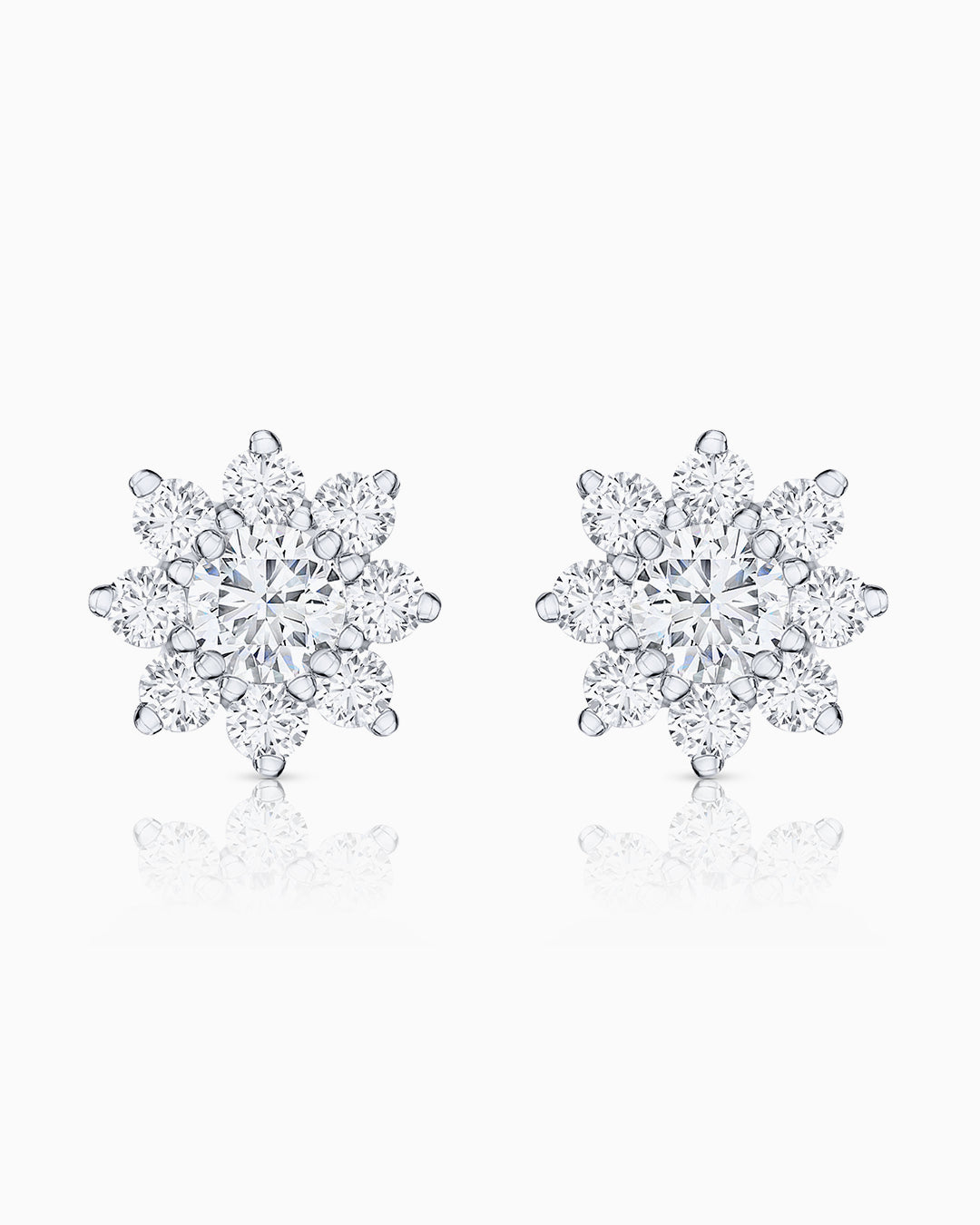 Rosette 1 ct Solitaire Diamond Earrings in 18k White Gold