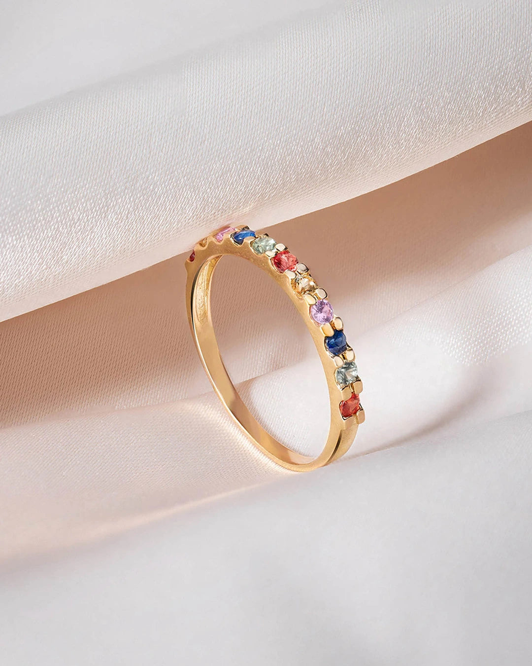 Minzi Multicolour Sapphire Half Eternity Ring in 18k Yellow Gold