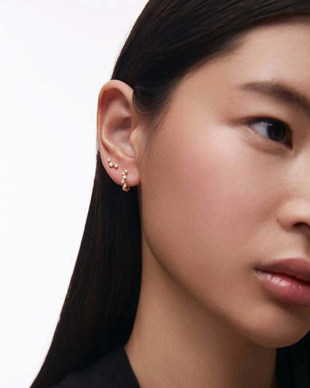 <!--td {border: 1px solid #cccccc;}br {mso-data-placement:same-cell;}-->Mumit’s Origine Croisée hoop earring pays tribute to bezel setting, one of the earliest techniques in fine jewelry craftsmanship. Their hoop design features an alternating pattern of bezel-set diamonds, creating a perfect balance between technical precision and creative expression. The rounded contours of this setting enhance the fluidity of the design while adding a distinctly modern touch. Like a thread of light, the purity of 18k gold and the brilliance of natural diamonds come together in a statement of sophistication that transcends passing trends. A timeless piece that honours the legacy of fine jewelry, reimagined through a refined and contemporary aesthetic.
