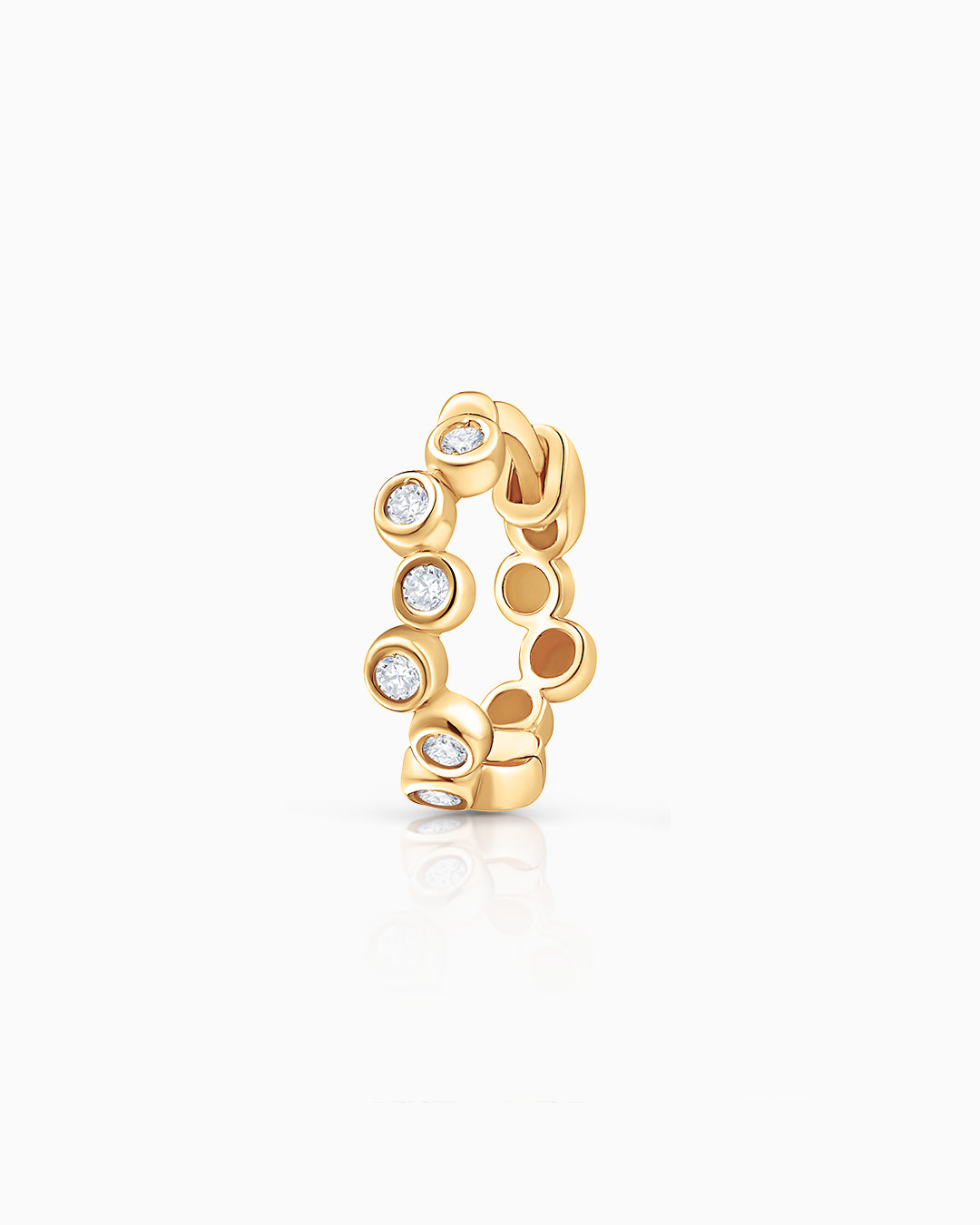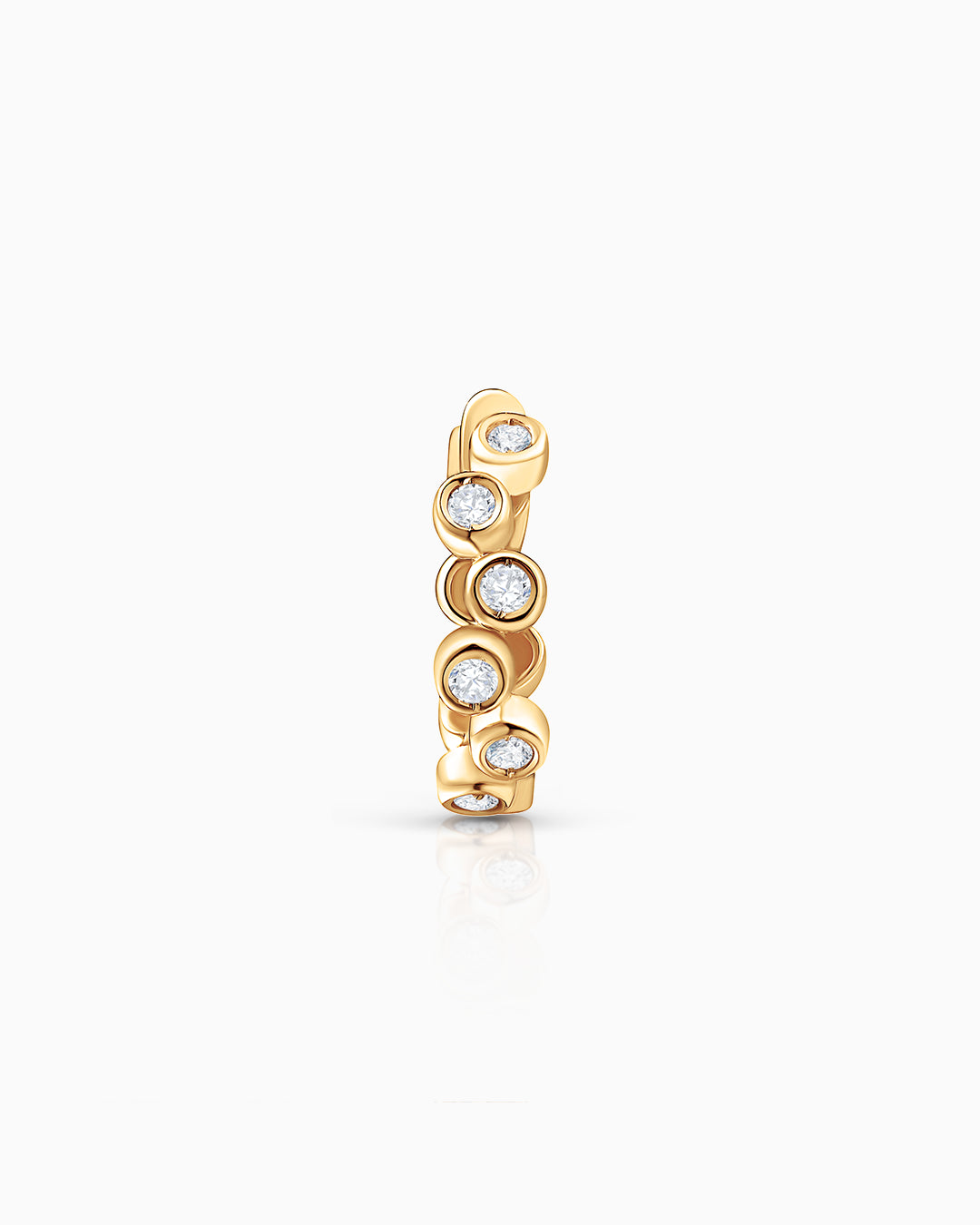 Discover the rich heritage of fine jewelry with Origine, a collection that pays tribute to the bezel as one of the earliest stone-setting techniques. Staying true to this legacy, each diamond is delicately enclosed in 18k gold, creating a subtle play of light that enhances the design’s clean lines. A versatile collection that reimagines classic craftsmanship through a refined, contemporary aesthetic.