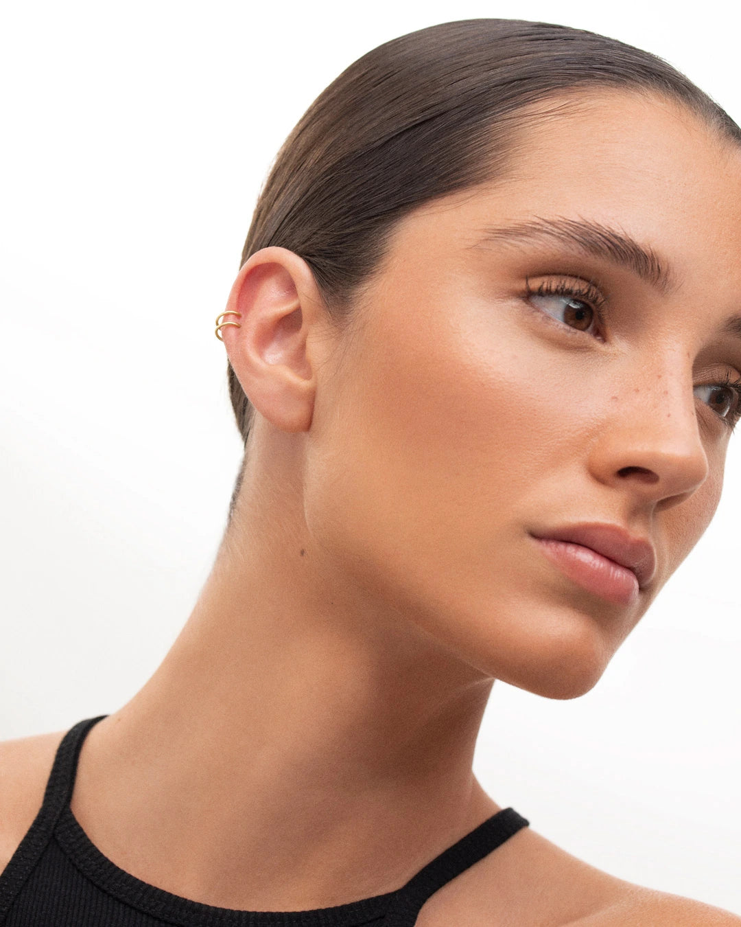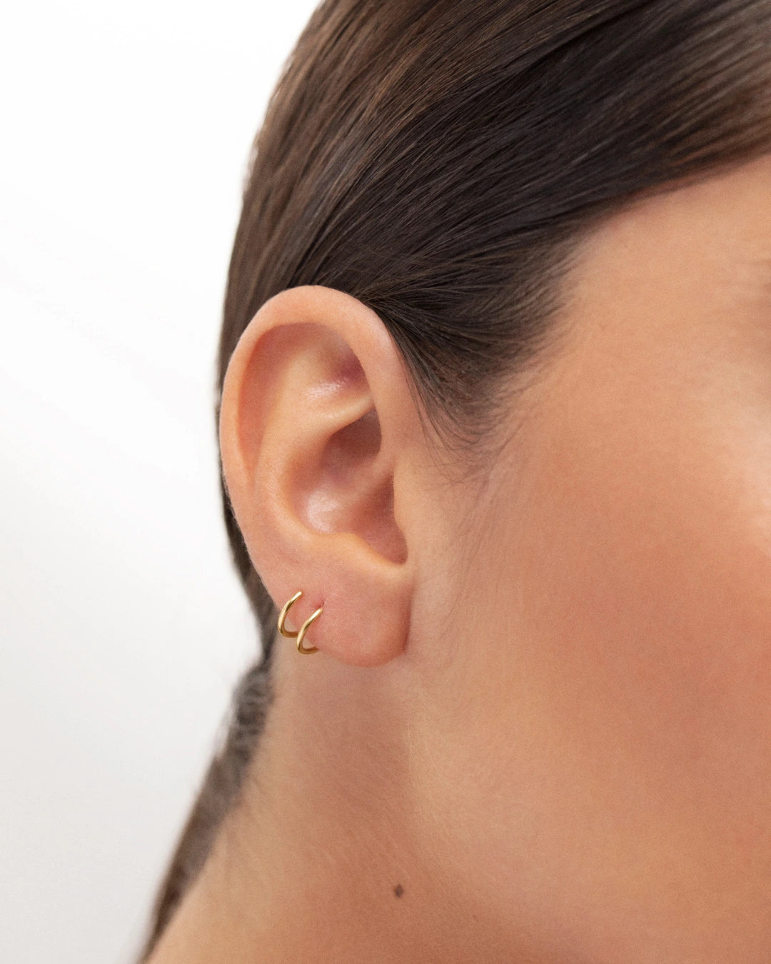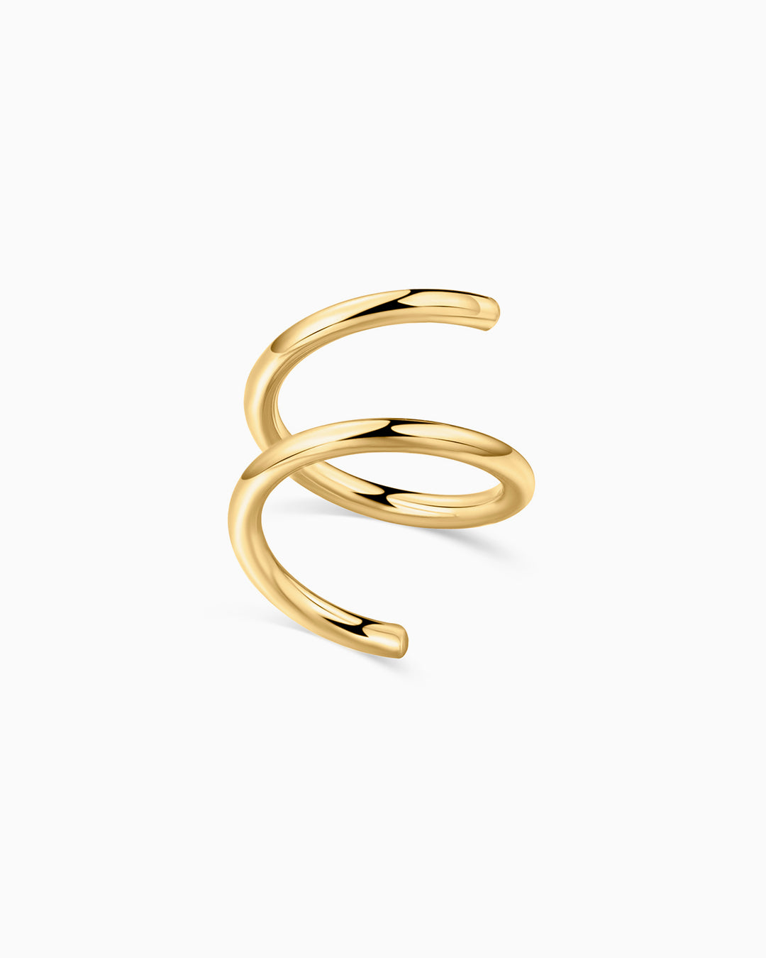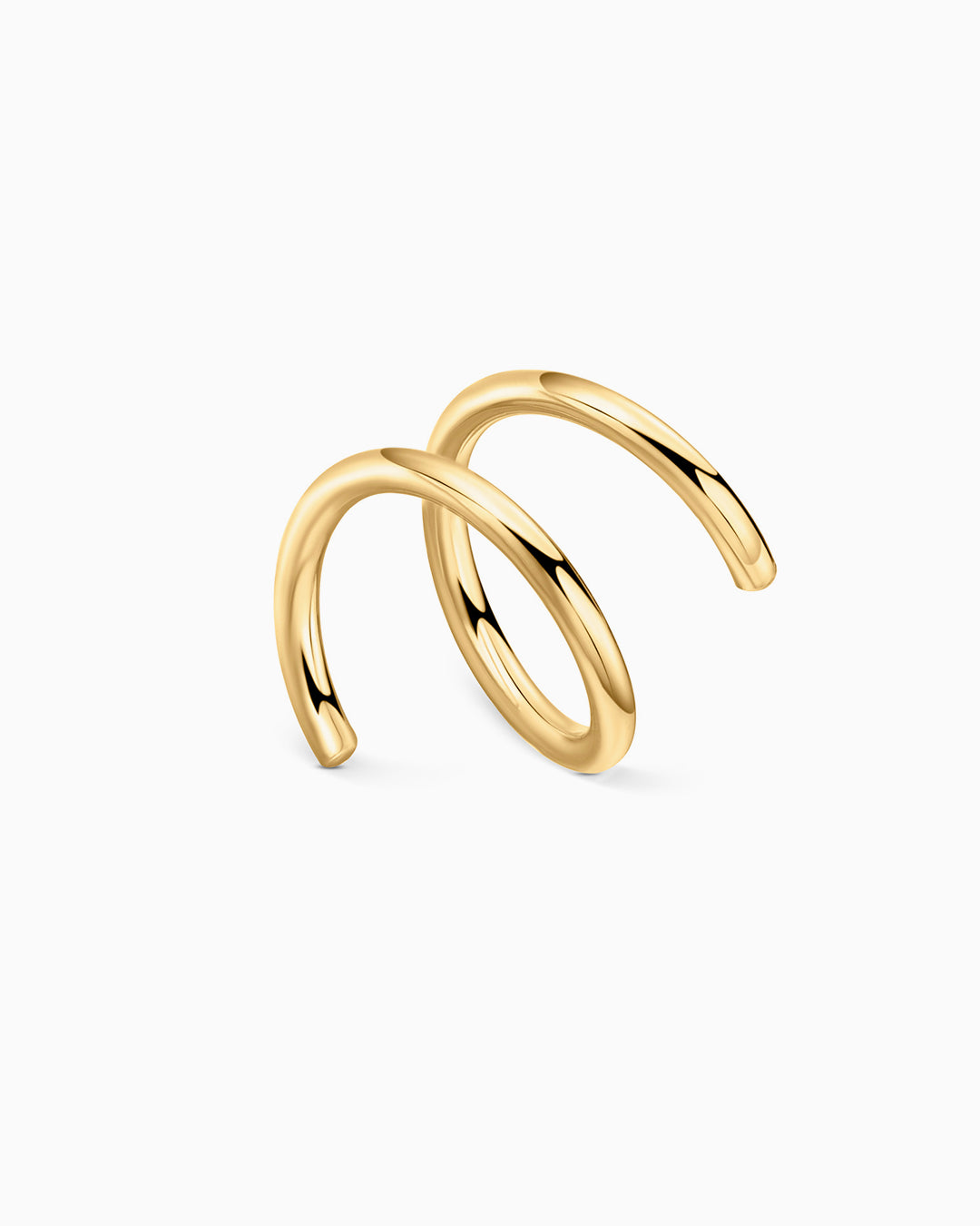 Twirl hoop earring made from 18k yellow gold. The playful Twirl earring is the easiest way to dip your toe into the earscaping trend if you don't have multiple piercings but would like to start experimenting with different earring combinations. Its ingenious spiral-shaped design will ensure you get a double-hoop effect with a single earring. Refined and versatile, it is also ideal for those who already have additional piercings anywhere along the silhouette of the ear, from the helix to the ear lobe. Discover our take on the minimalist trend with a unique hoop earring that will add a little edge to any look.