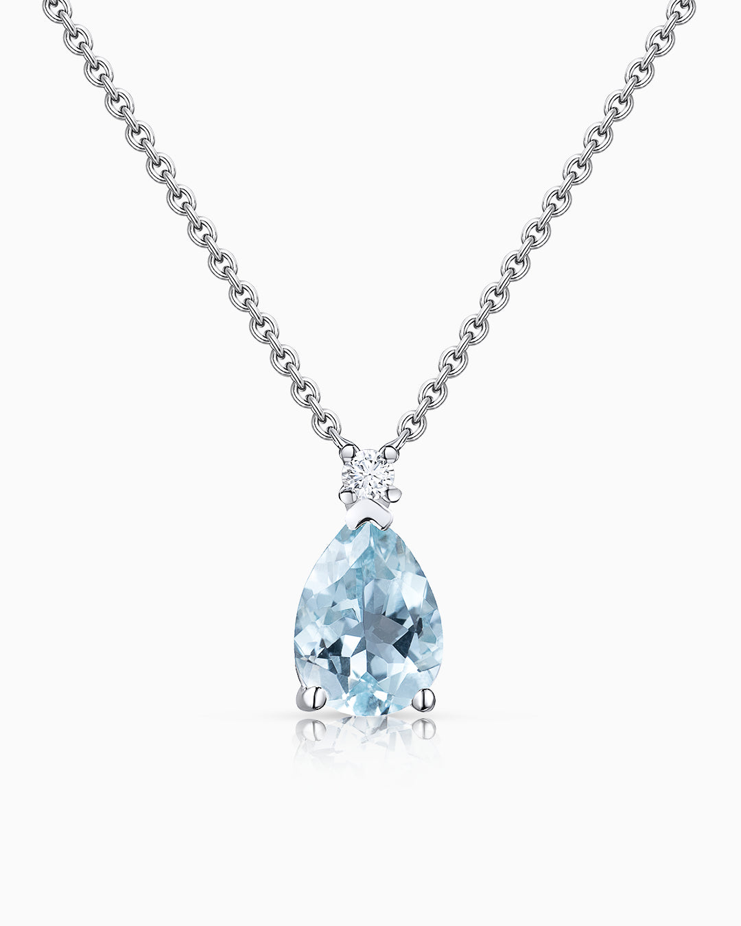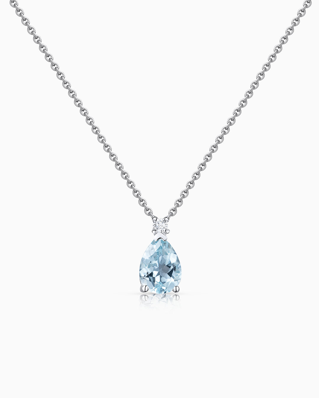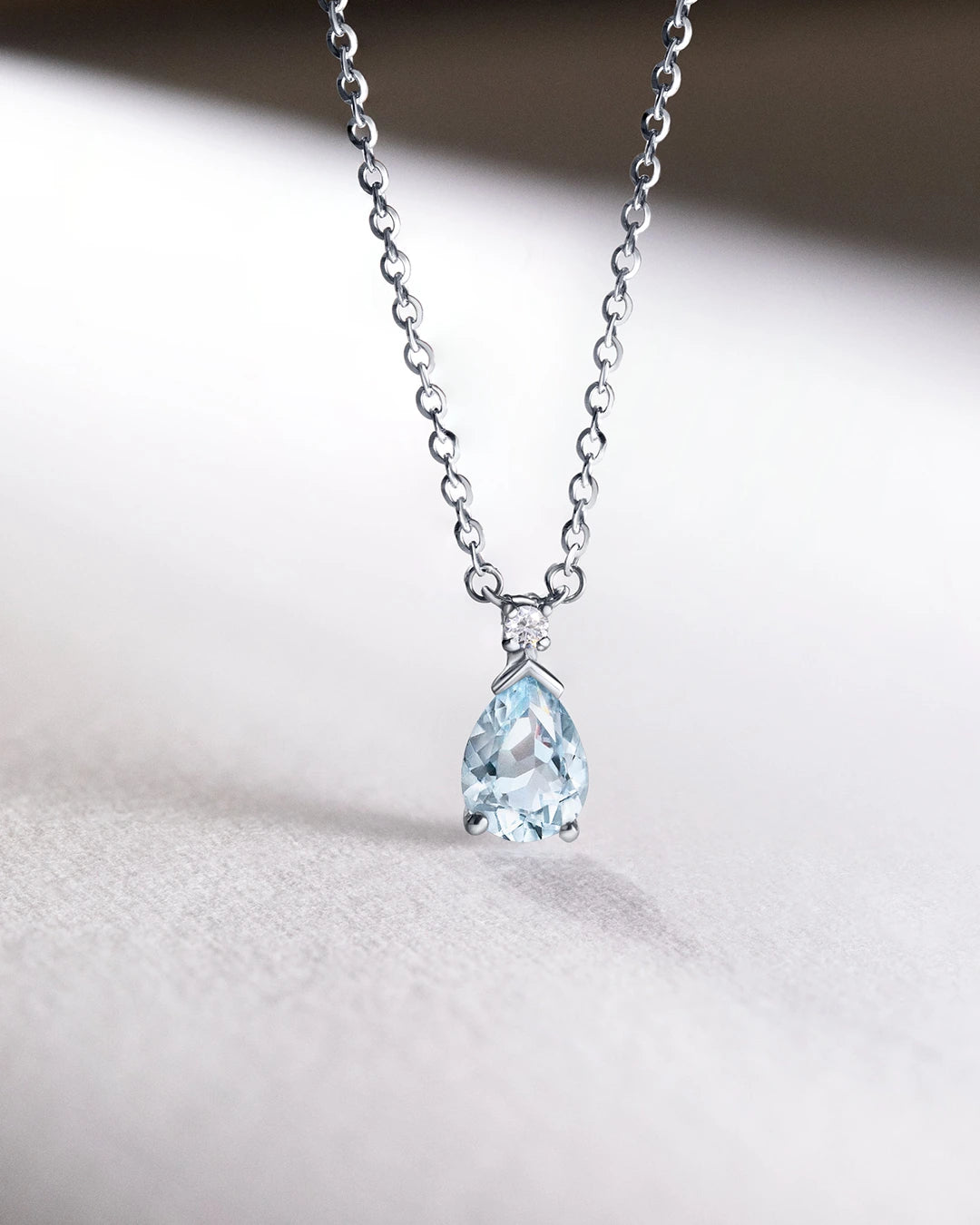 Amelie Pear Aquamarine Necklace in 18k White Gold