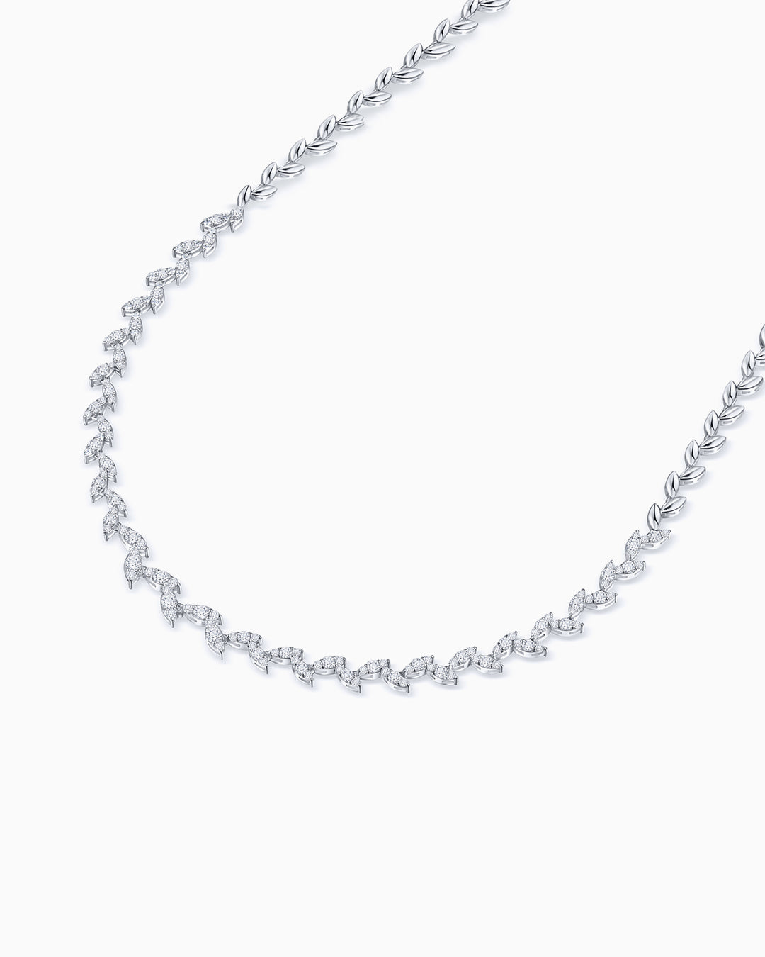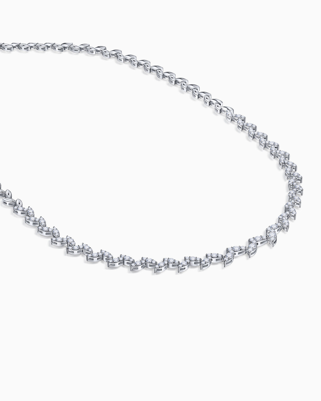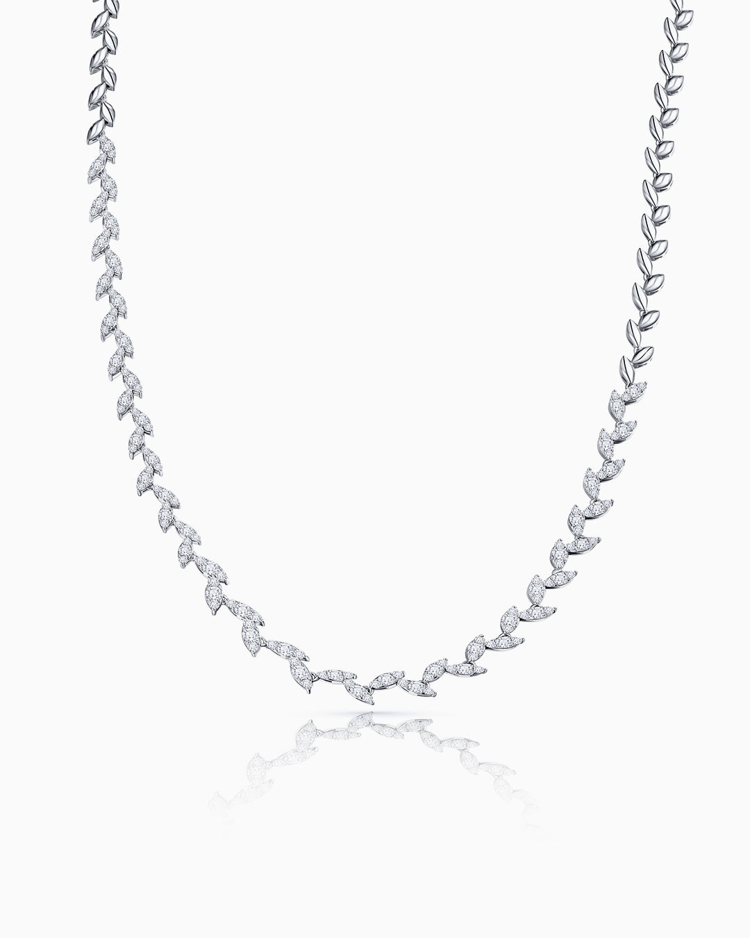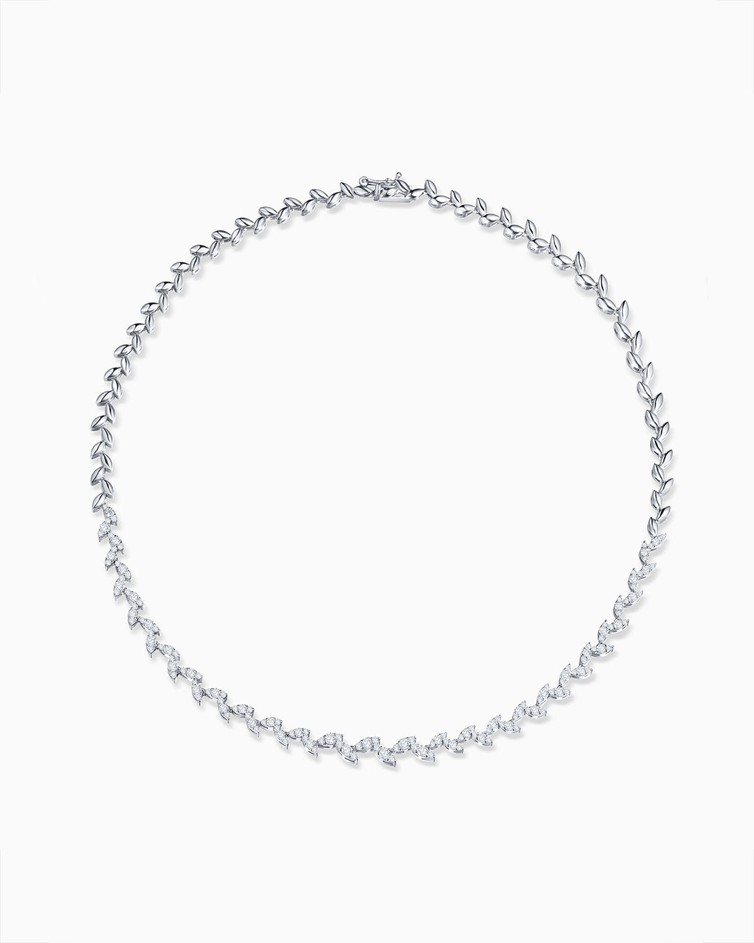 The beauty of the world around us serves as an enduring source of inspiration at Mumit. Like poetry in motion, the romantic and graceful whisper of willow leaves has captivated our imagination, becoming the very soul of the Willow collection. Our designers drew upon the majesty of this tree to infuse a touch of freshness and delicacy into a fine jewelry icon: the rivière. The Willow necklace thus emerges as a symbol of the balance between modernity and tradition that defines the brand. Each leaf is crafted from a cluster of natural diamonds that dance with light, reminiscent of sunbeams filtering through the branches. The unique interplay of the leaves adds a dynamic nuance to the design, evoking the soft cadence of a breeze brushing through the foliage. The result is an exquisitely delicate piece that seamlessly reflects the bond between art and nature, making it a fitting addition to the most exclusive collections.