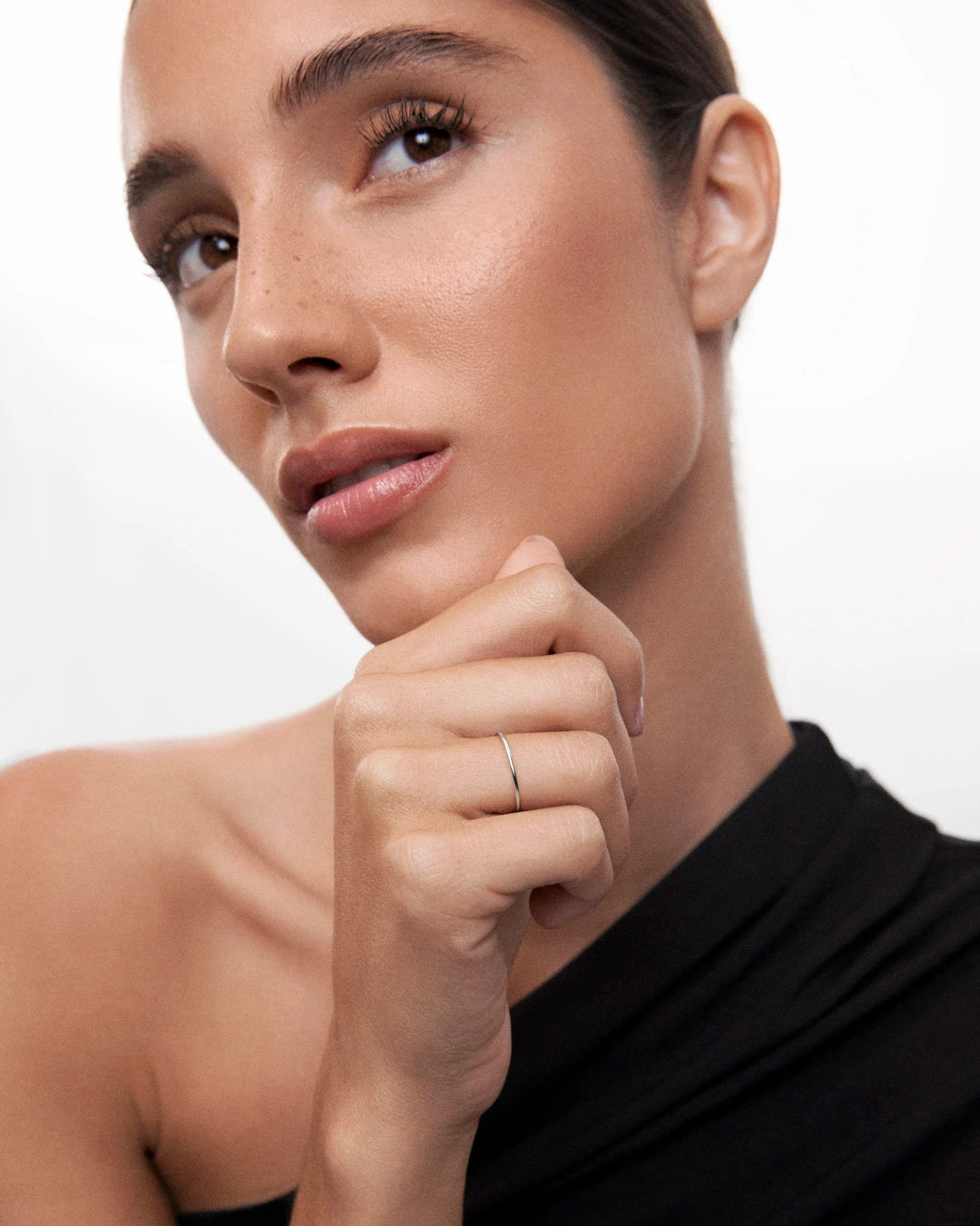 Finesse ring crafted from 18k white gold. Embodying simplicity and sophistication, the minimalist-inspired Finesse ring adds a unique flash of gold to any look. The soft silhouette of this timeless piece of jewelry features pure and rounded lines that result in a feminine and delicate essence. At Mumit, we strive for versatile designs such as our Finesse ring so you can create your own ring stack and find combinations that represent your mood and personality, switching them up when you feel like it. Start building a lifelong jewelry collection with Finesse, your go-to ring for any occasion.