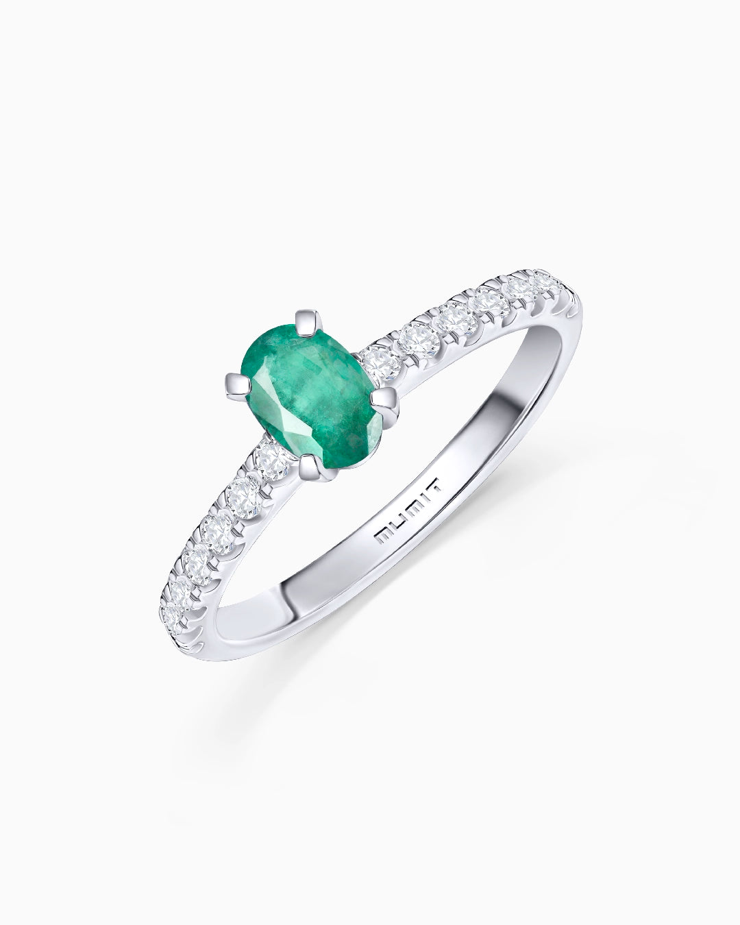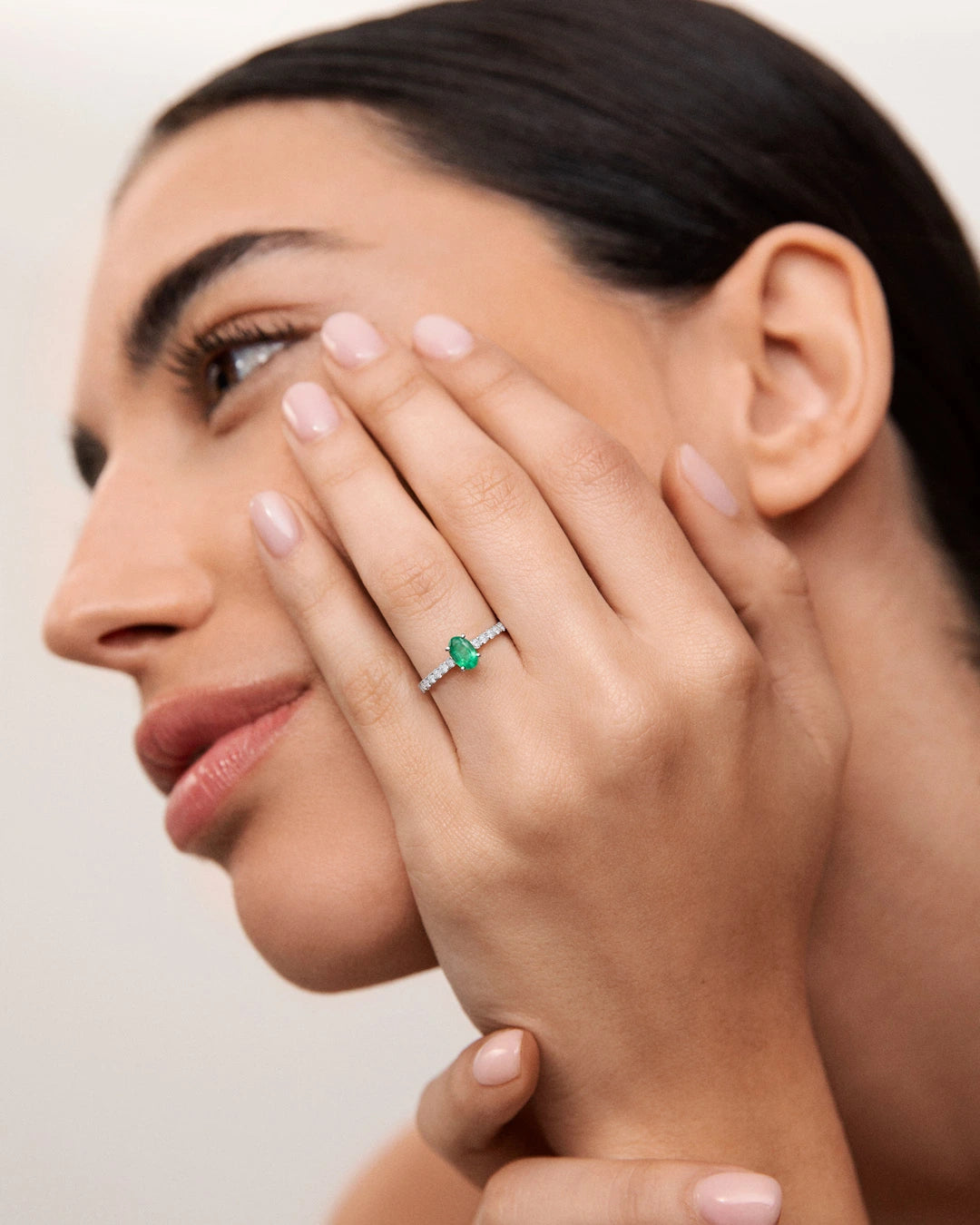 - Gemstone: central oval-cut emerald (carat total weight 0.60)