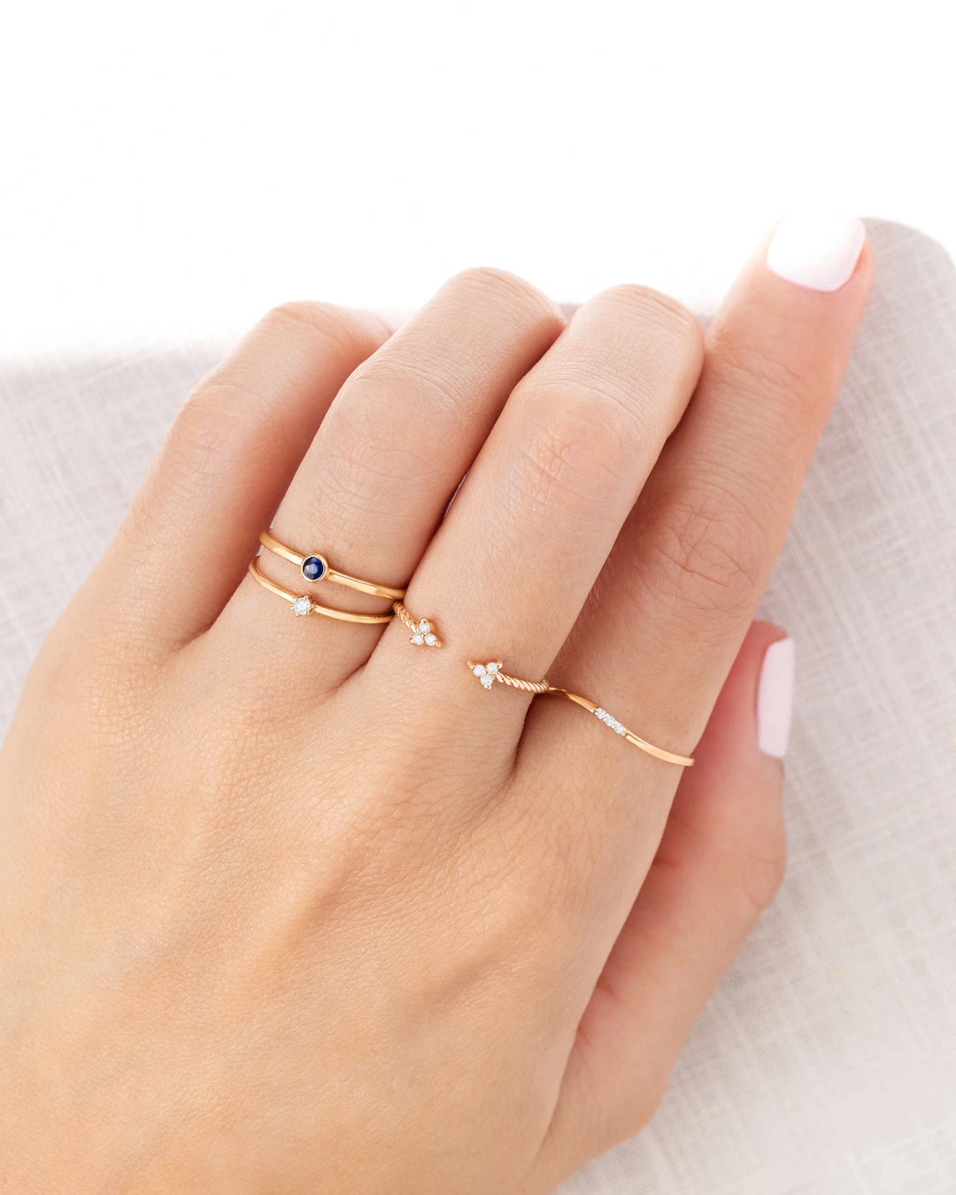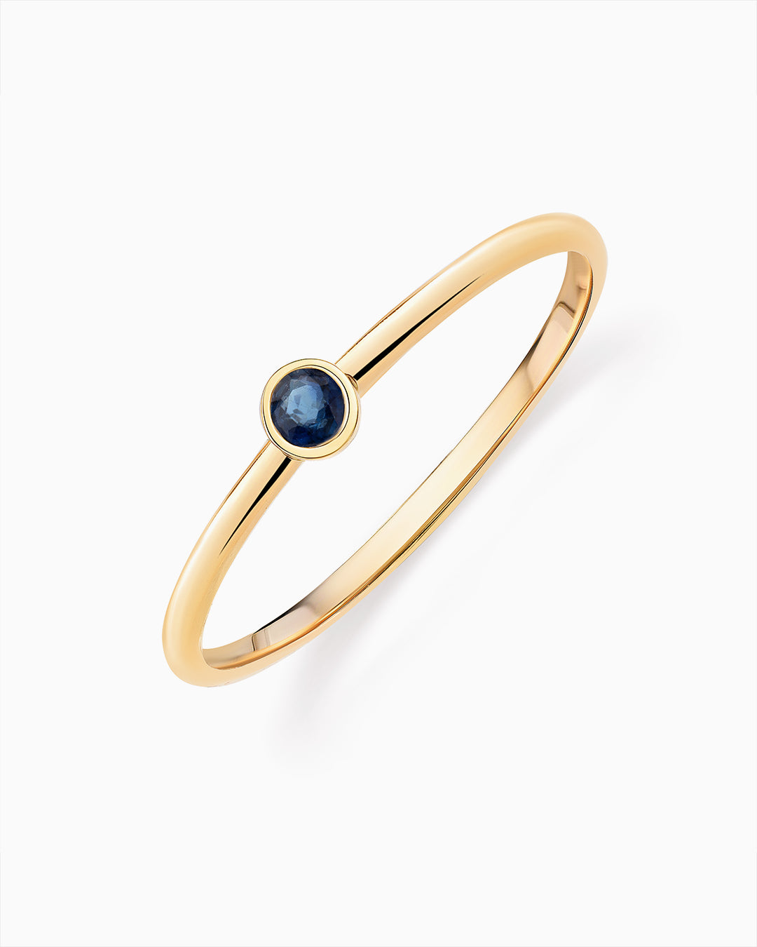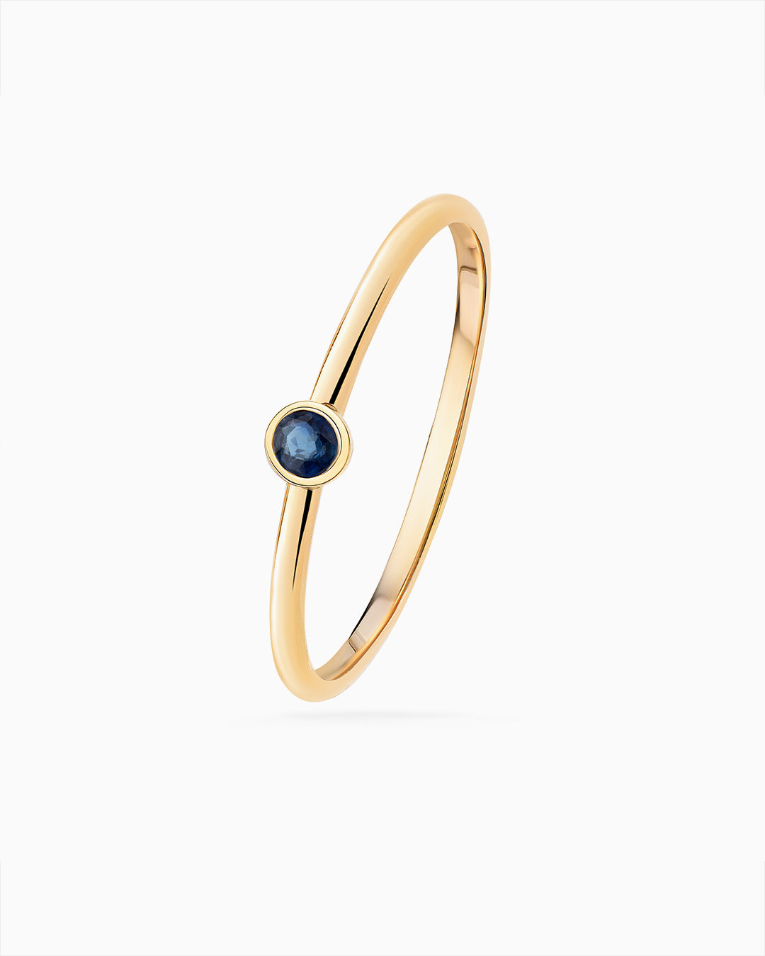 Stud Colours ring with central sapphire set in 18k yellow gold setting. Delicate and shimmering, this beautiful ring with its clean lines and contemporary aesthetic is the everyday touch of colour you’ve been looking for. This is a solitaire ring with a magical central bezel set sapphire that provides that touch of originality that characterises each Mumit piece. A design with a touch of simplicity that makes it timeless. Its timeless aesthetic means that this ring can be worn alone or combined with others. The ring is of fine solid gold, which means it is comfortable enough to wear in your everyday adventures.The Stud Colours ring is available in three versions, with emerald, ruby, or sapphire in 18k yellow gold.