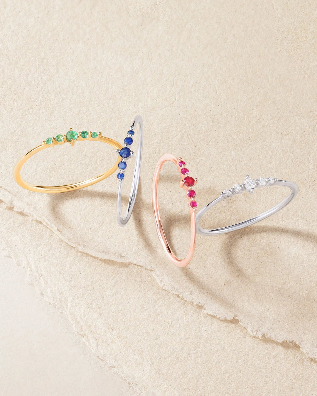 - Also available in rose gold with ruby, yellow gold with emerald and white gold with sapphire