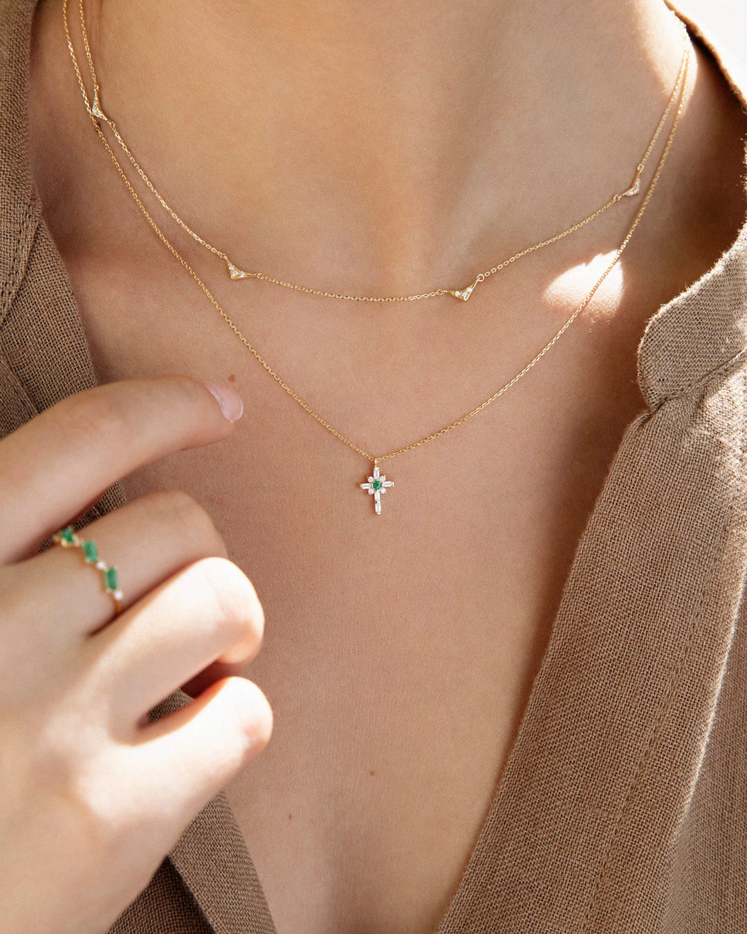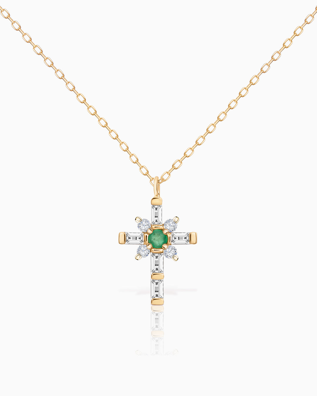 - Brinna Cross Necklace with Diamonds and Central Emerald