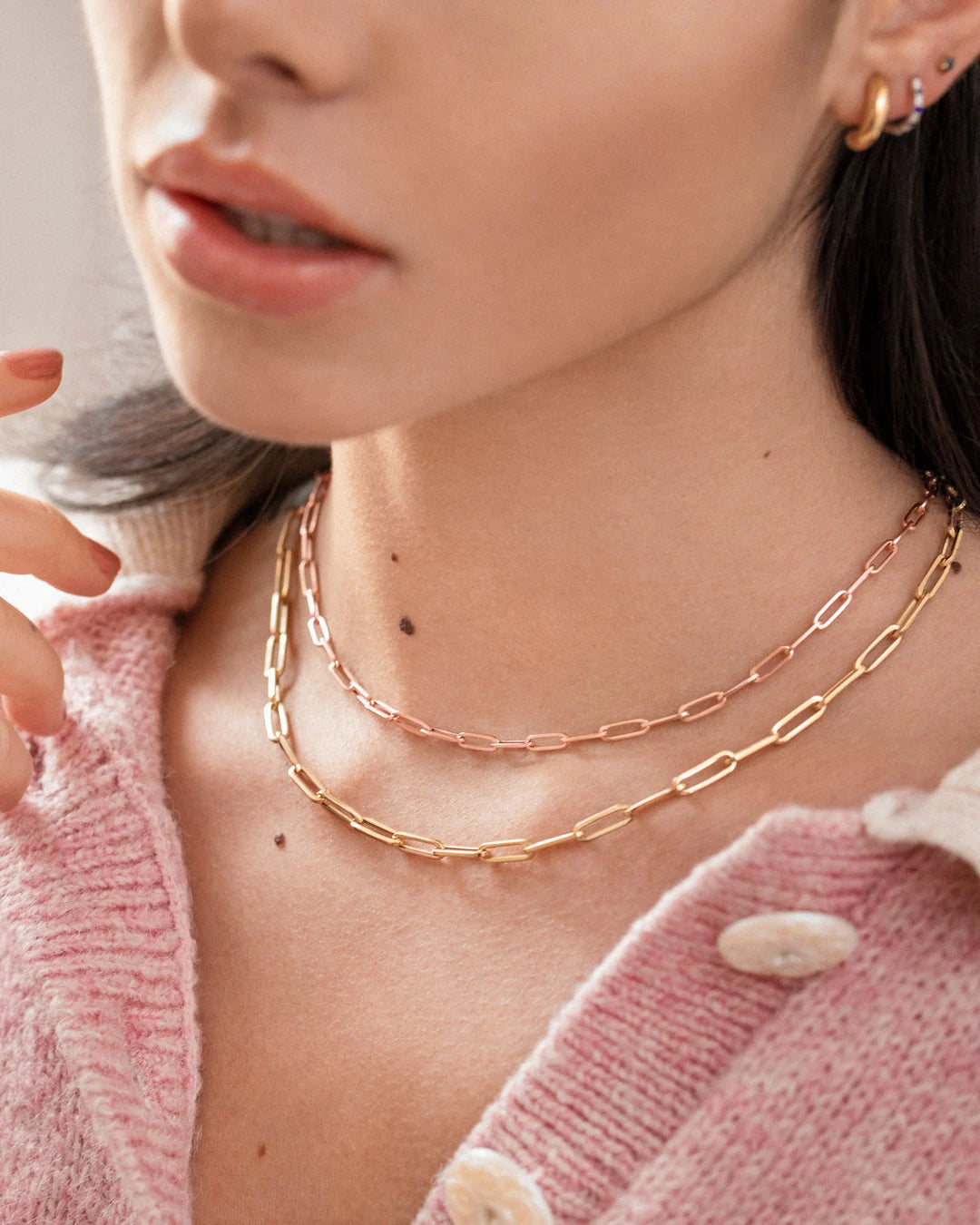A layering necklace, also known as a princess necklace, is typically between 40 and 45 centimetres long, perfect for wearing alone or combined with other pieces. At Mumit, we offer a wide range of layering necklaces with adjustable clasps to ensure the perfect fit, seamlessly balancing versatility and elegance.