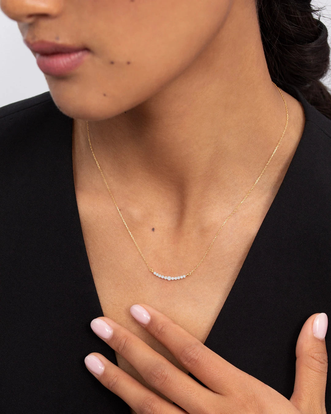 A layering necklace, also known as a princess necklace, is typically between 40 and 45 centimetres long, perfect for wearing alone or combined with other pieces. At Mumit, we offer a wide range of layering necklaces with adjustable clasps to ensure the perfect fit, seamlessly balancing versatility and elegance.